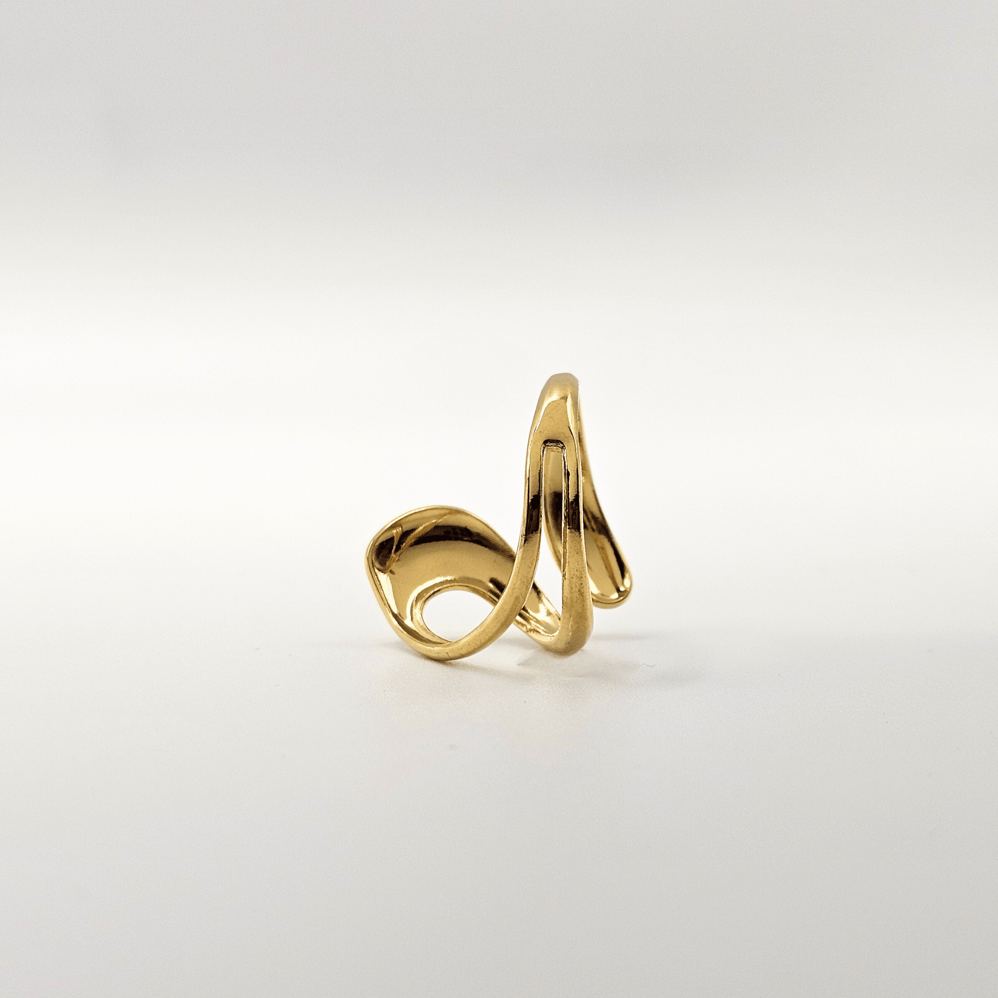 Style Tip: Let the Aurea Flow Statement Ring take center stage by pairing it with sleek, minimalist gold hoops or a simple chain bracelet. Perfect for styling with tailored blazers, silk blouses, or evening dresses, this sculptural piece adds a touch of modern artistry to any outfit.