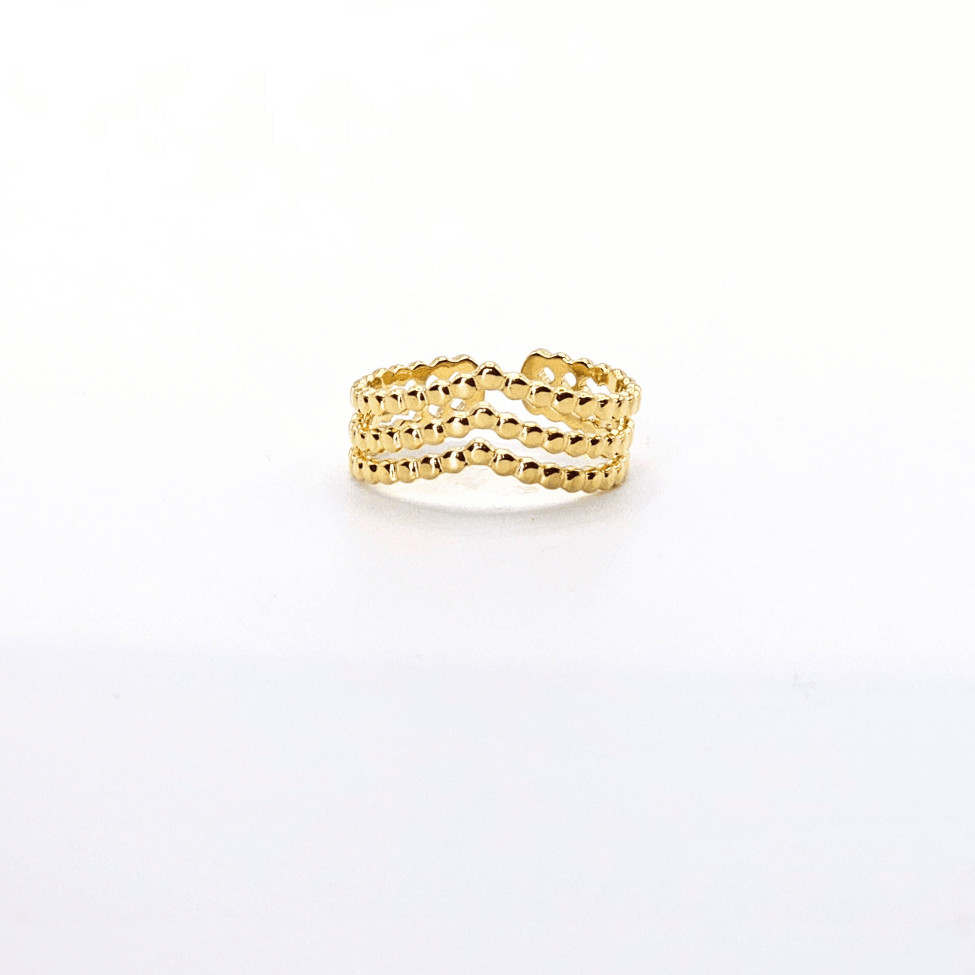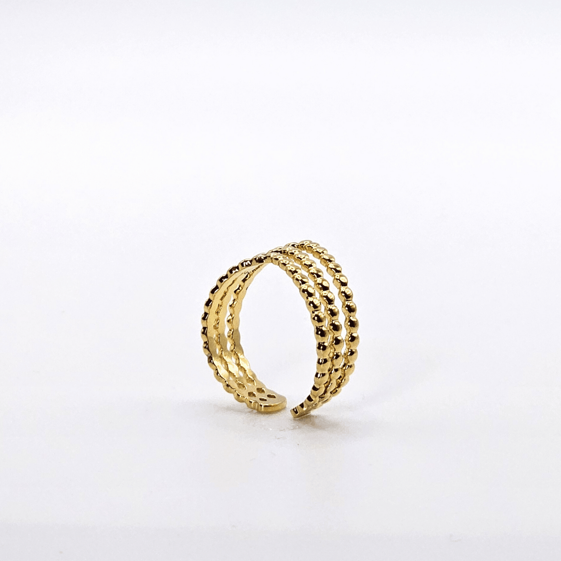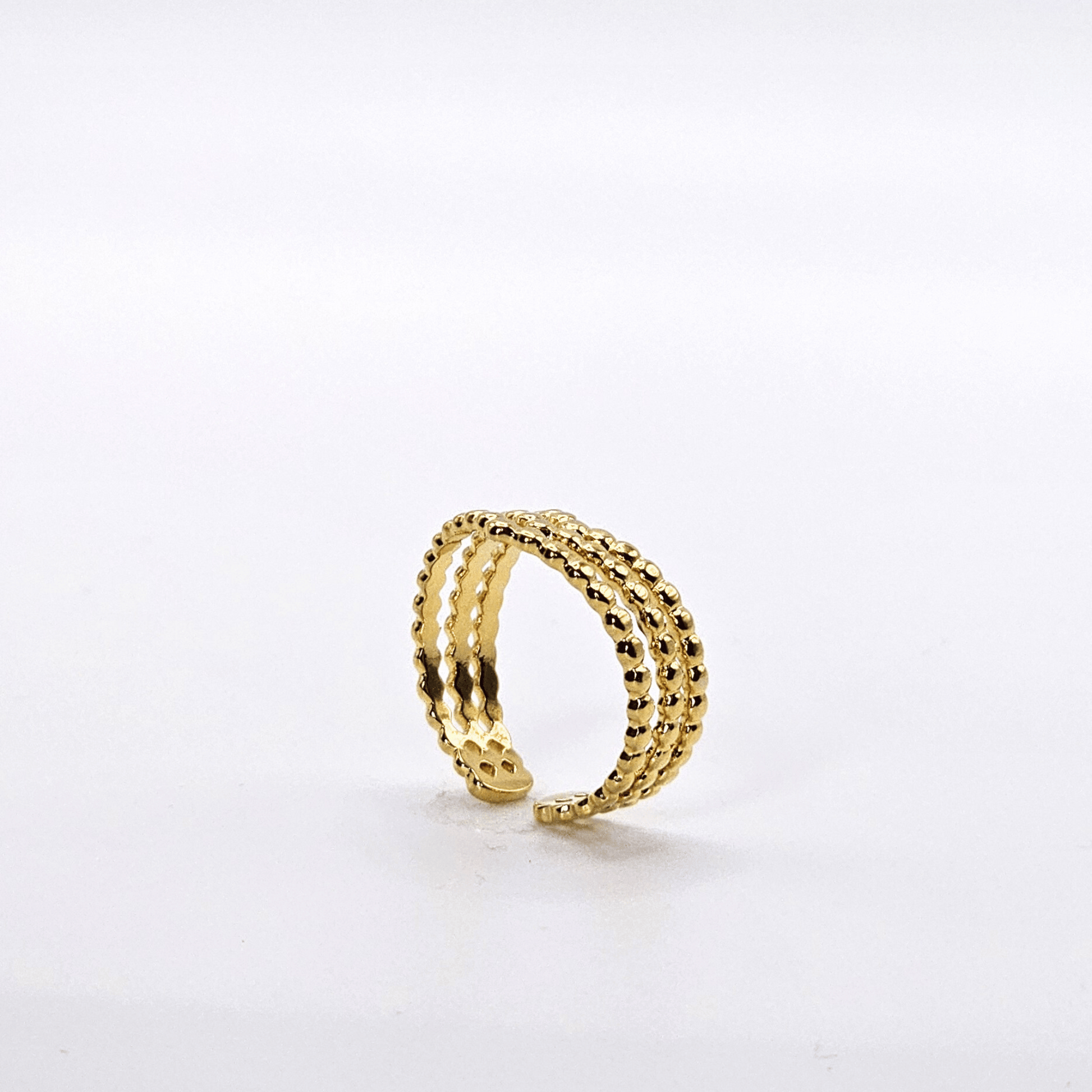 Effortlessly chic and endlessly versatile, the Chivelle Beaded Glow Stackable Ring is your go-to for an elevated everyday look. Crafted from premium stainless steel with an 18k gold plating, this slim band features a beaded texture that catches the light beautifully. Designed for comfort and durability, it’s waterproof, skin-friendly, and anti-tarnish – perfect for stacking with your favourite rings or wearing solo for a minimalist touch.