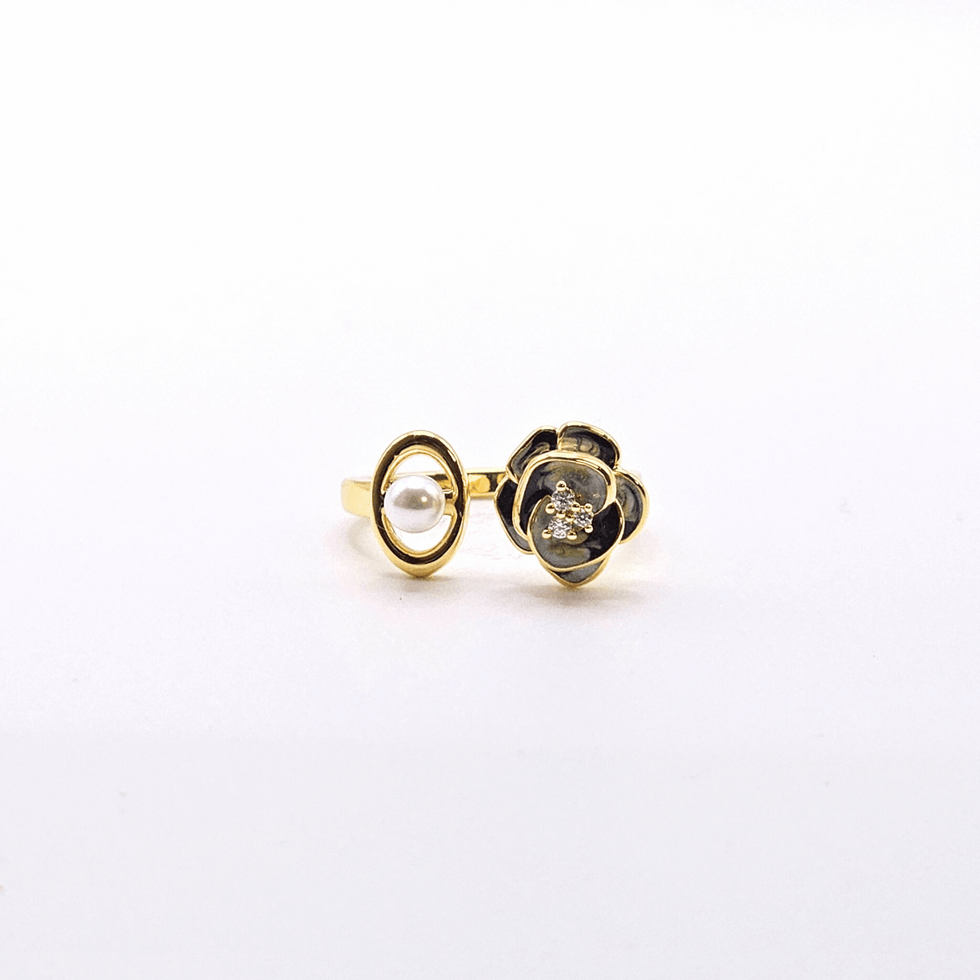 Chivelle Bloom & Mother-of-Pearl Duo Gold Ring – Minimalist Open Design