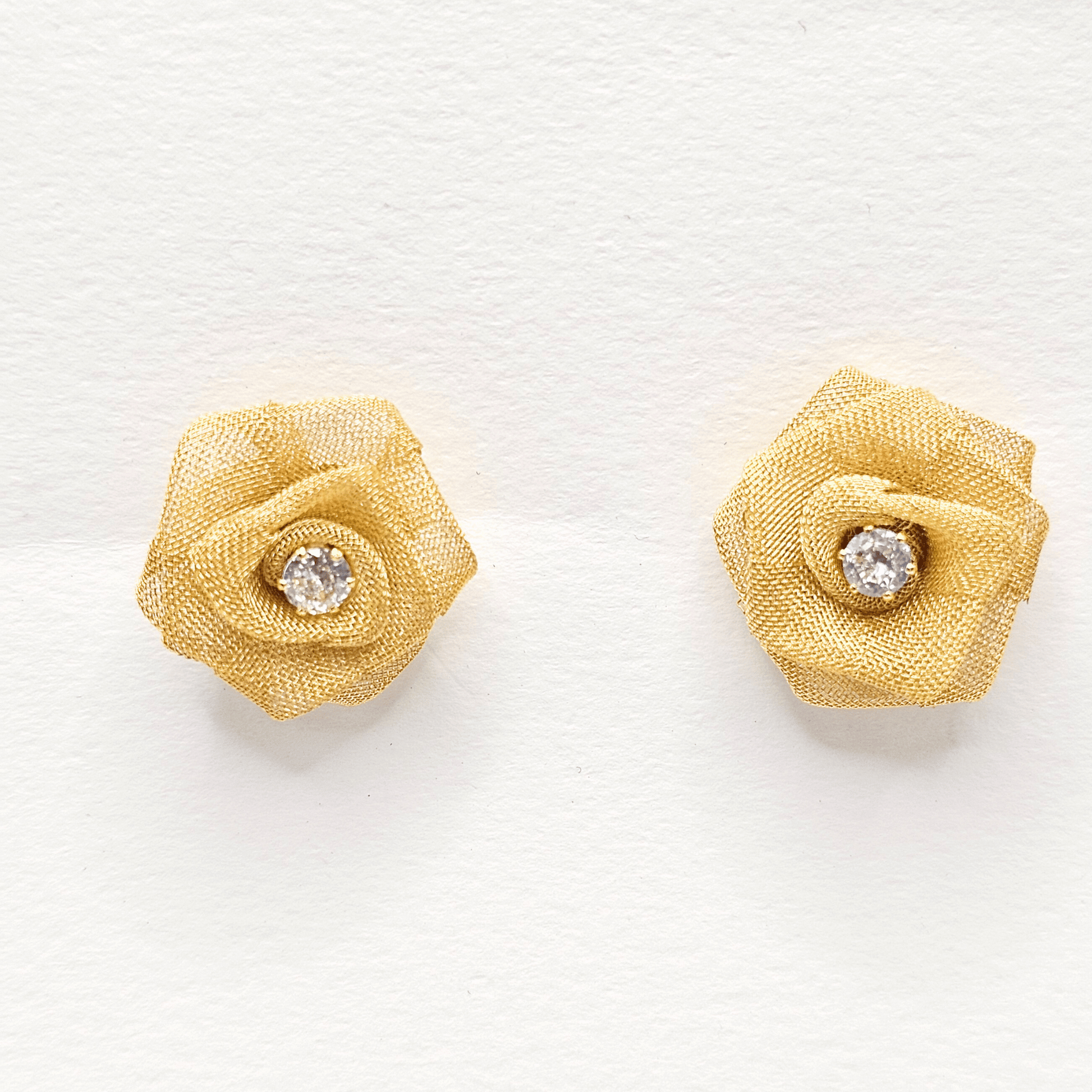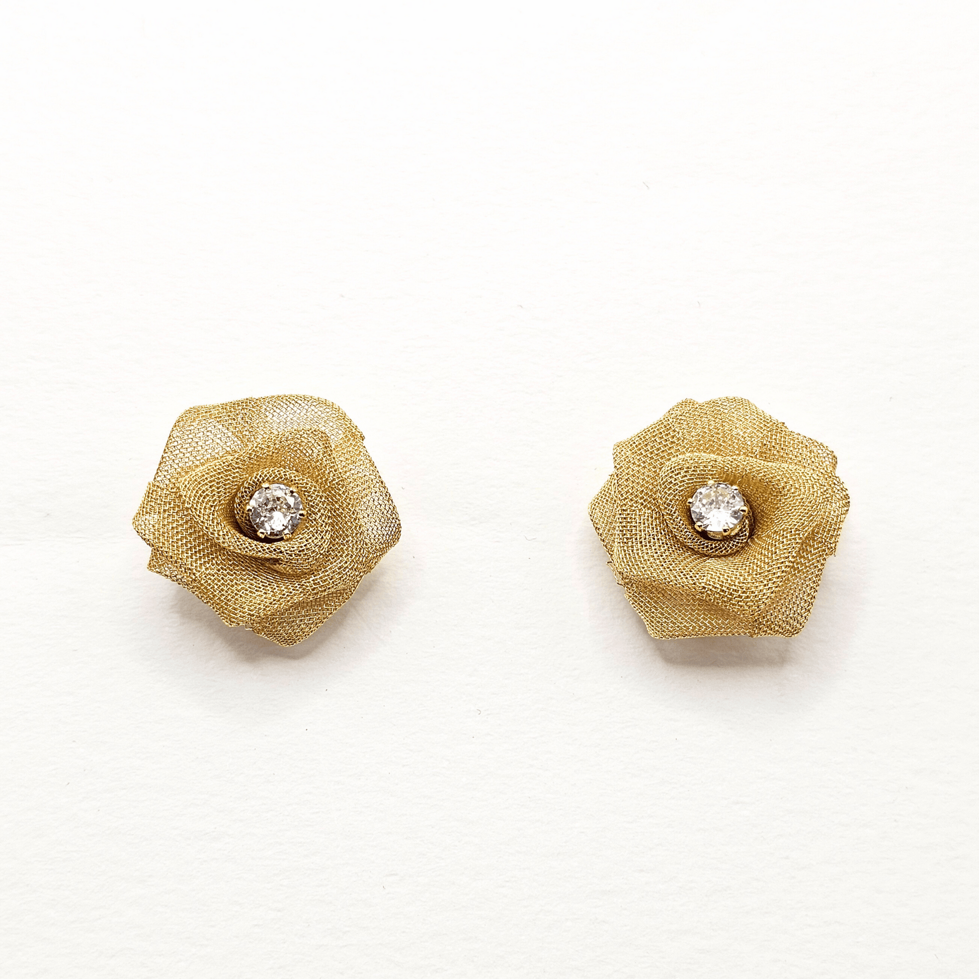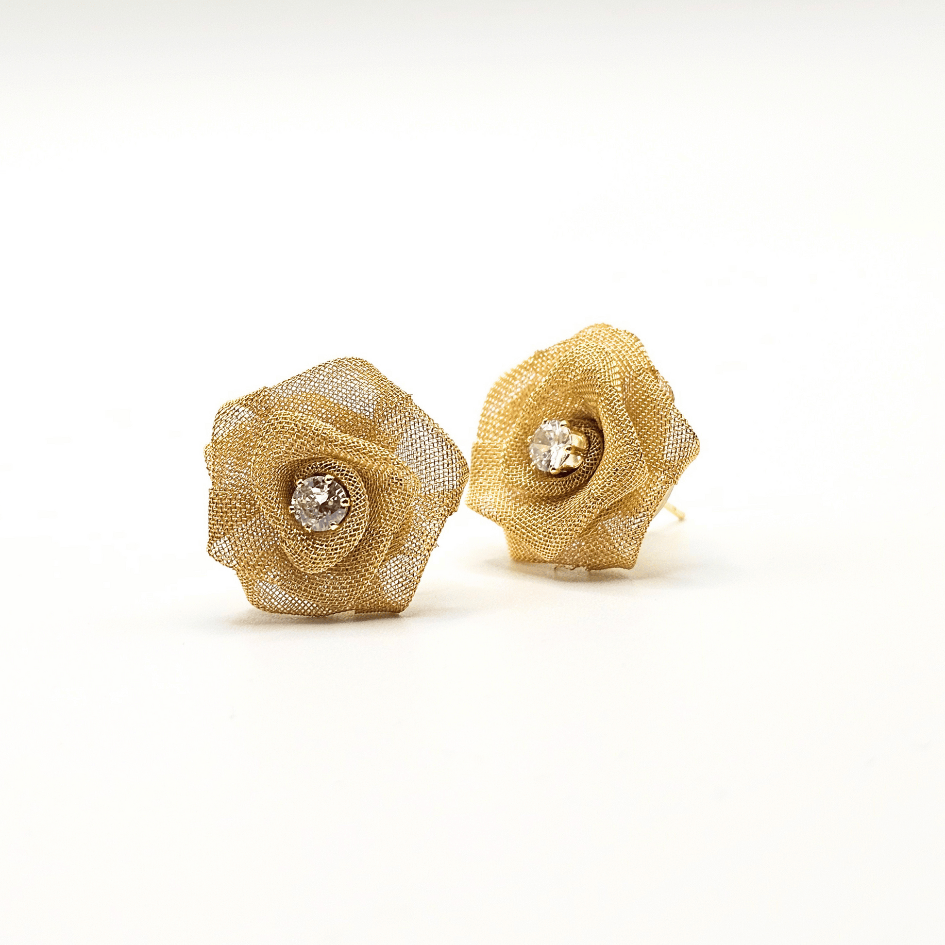 - Intricately designed gold mesh rose with a sparkling cubic zirconia centre