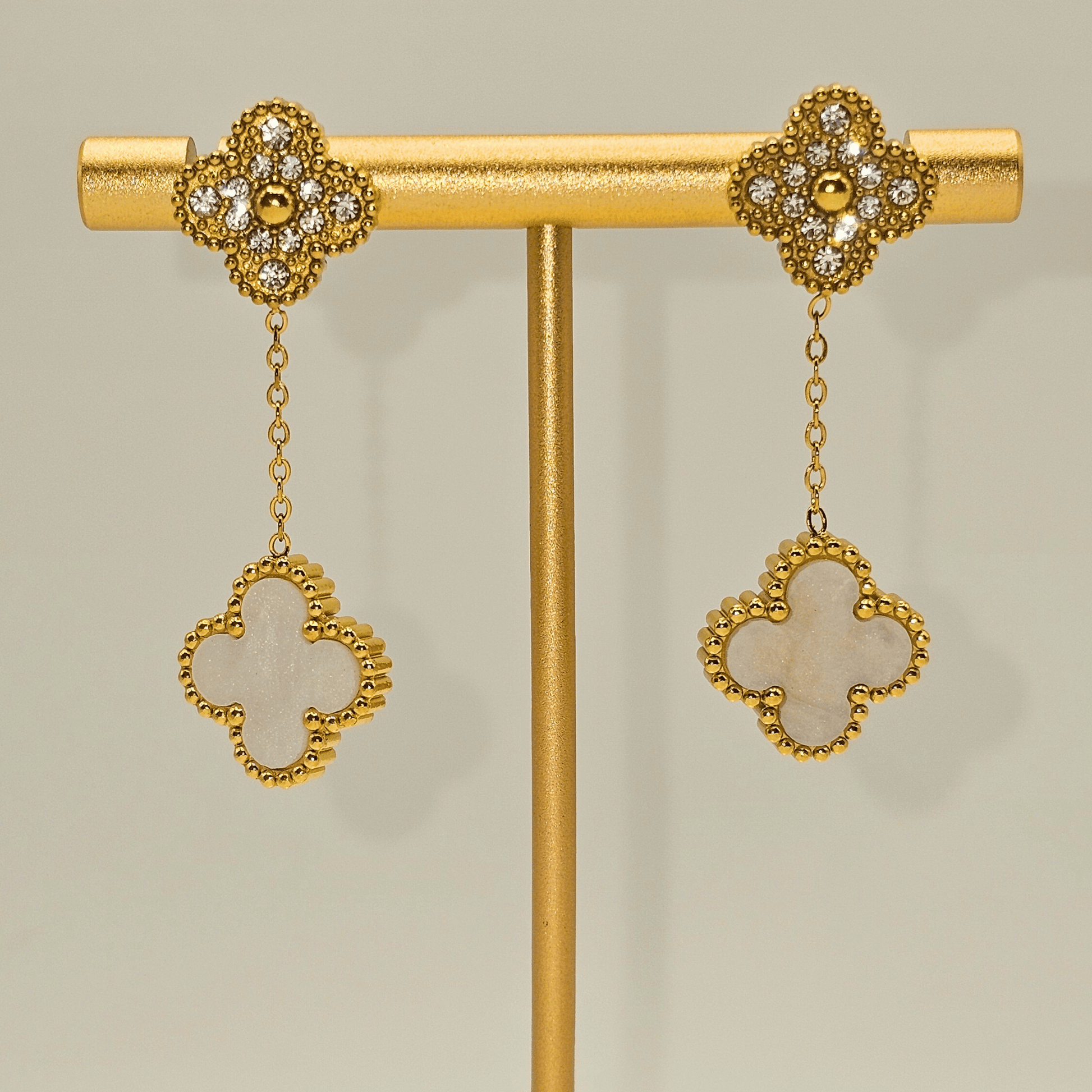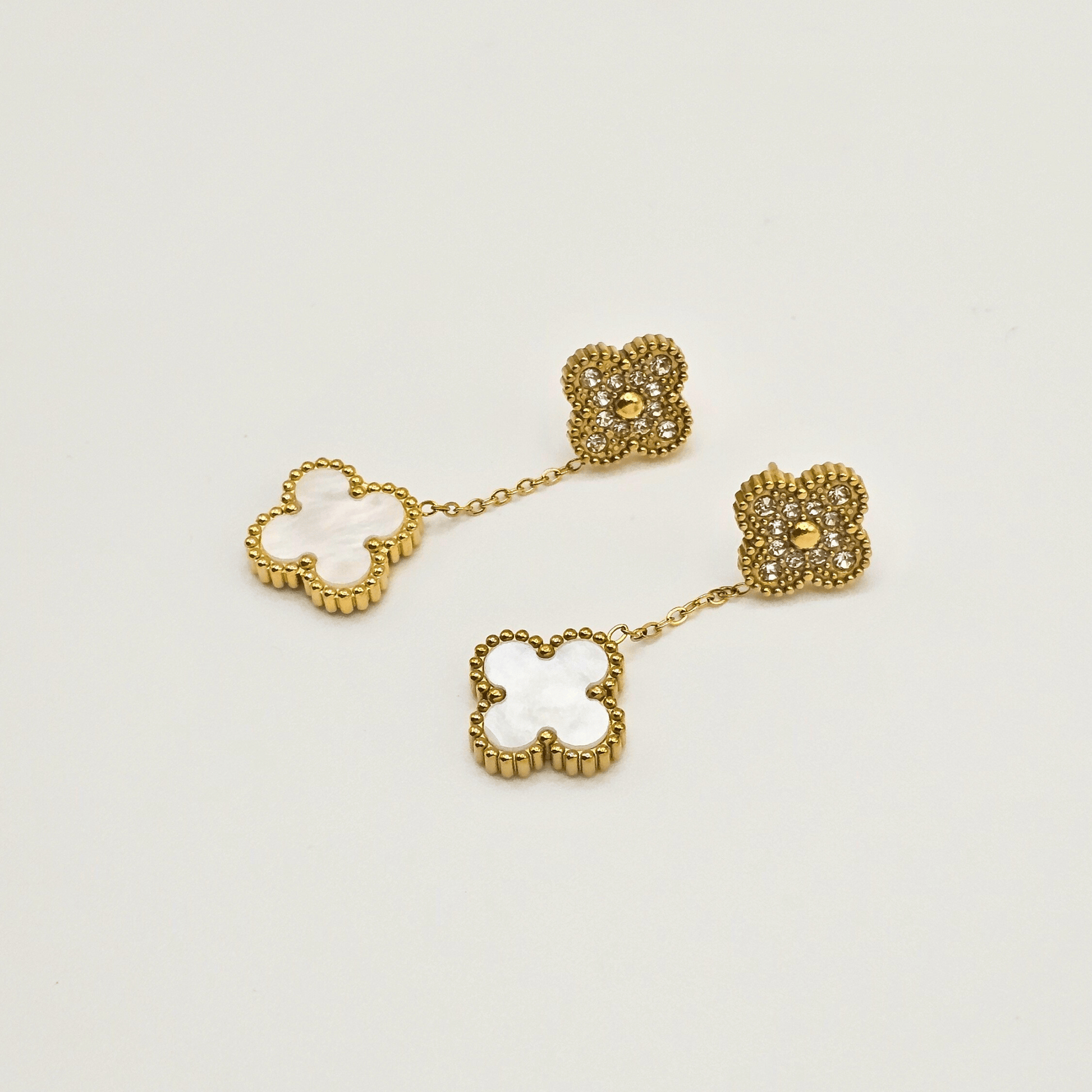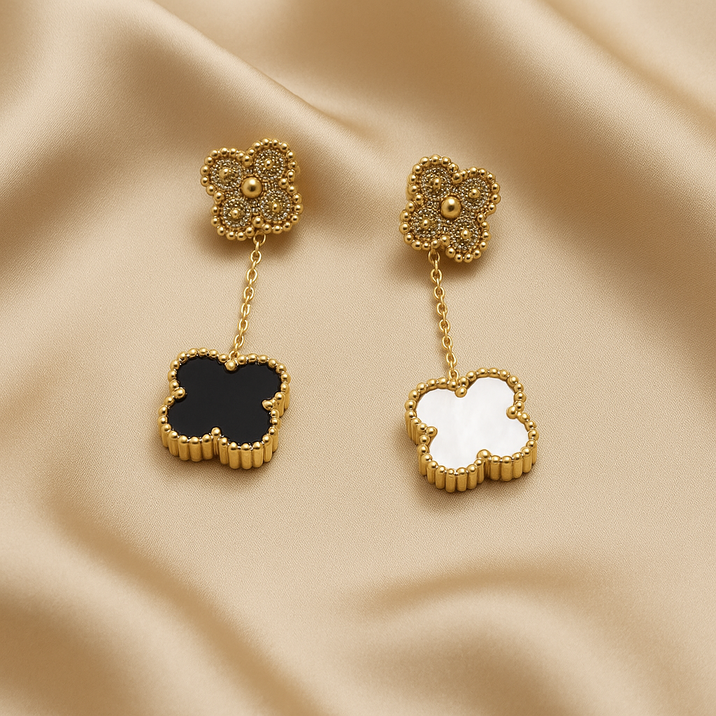 Chivelle Clover Drop Earrings – Dual Tone Elegance