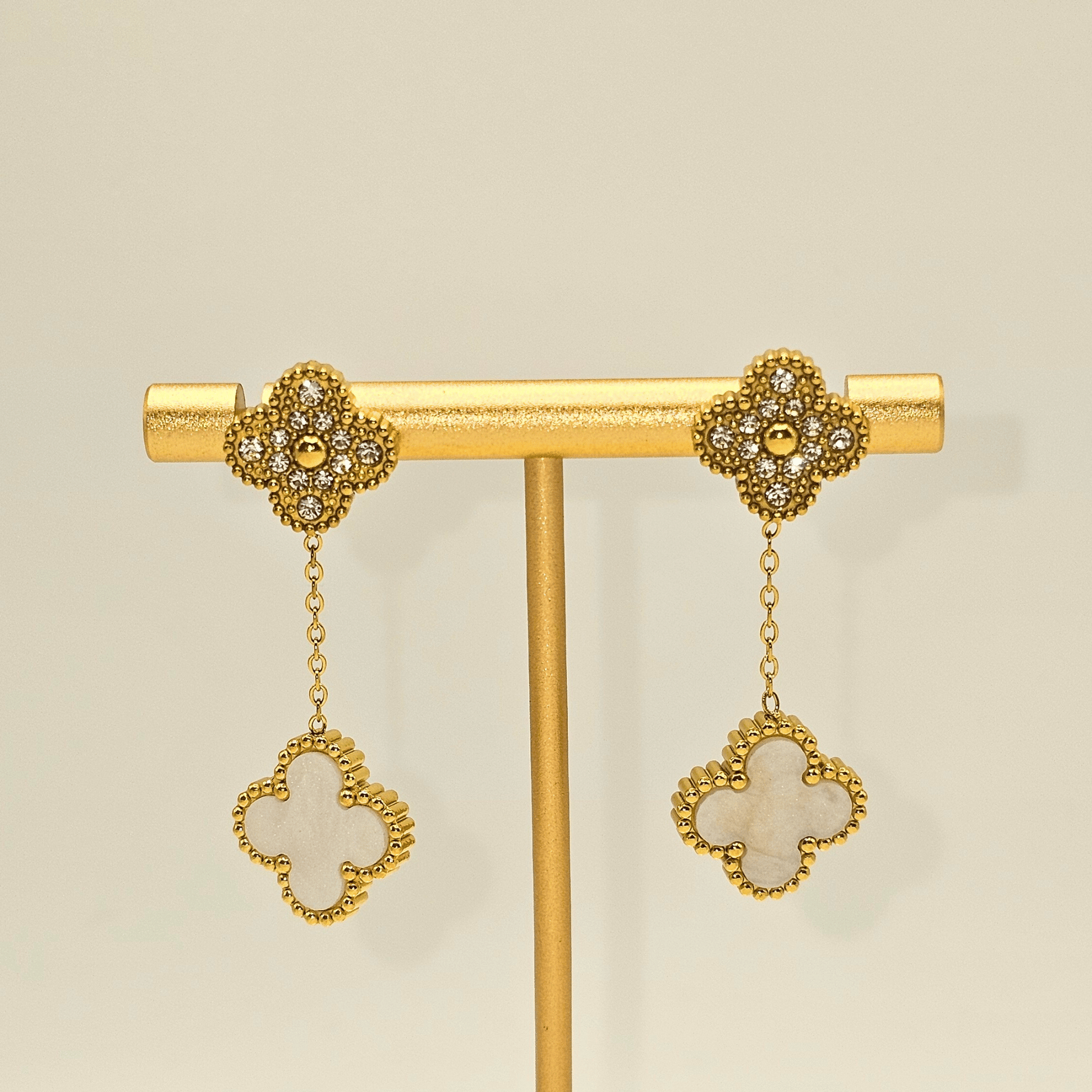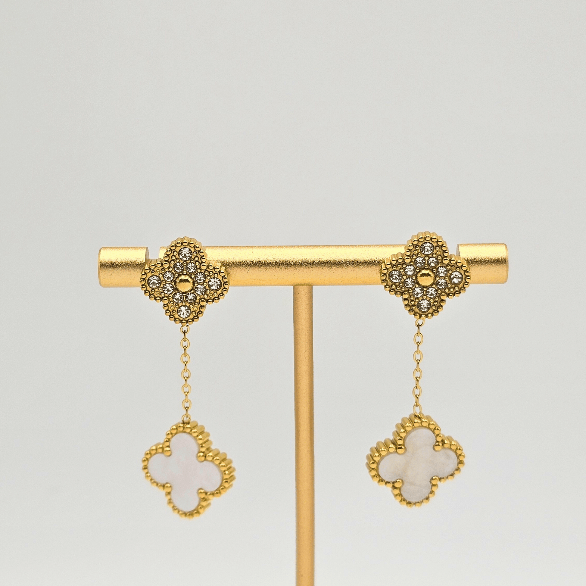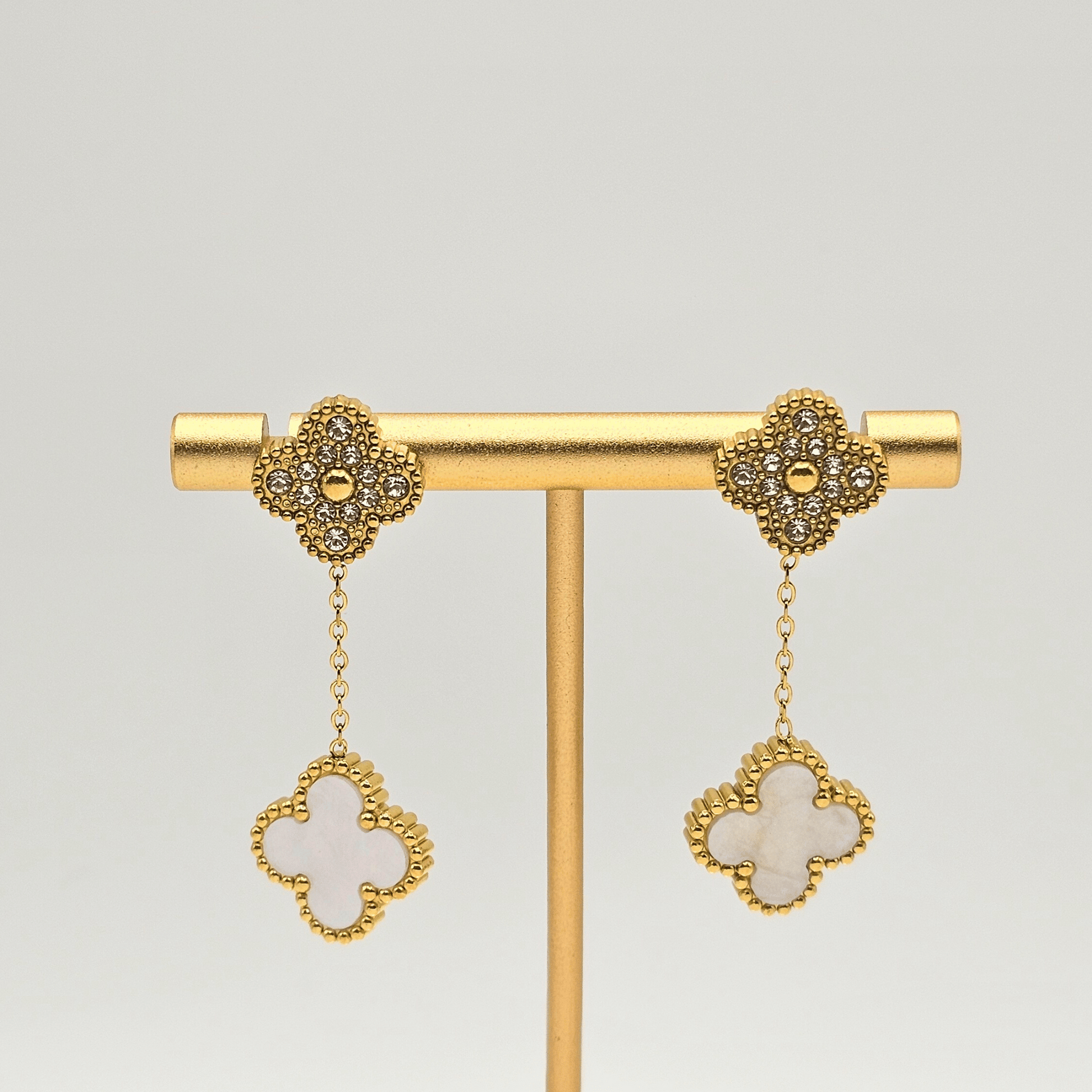 Chivelle Clover Drop Earrings – Dual Tone Elegance