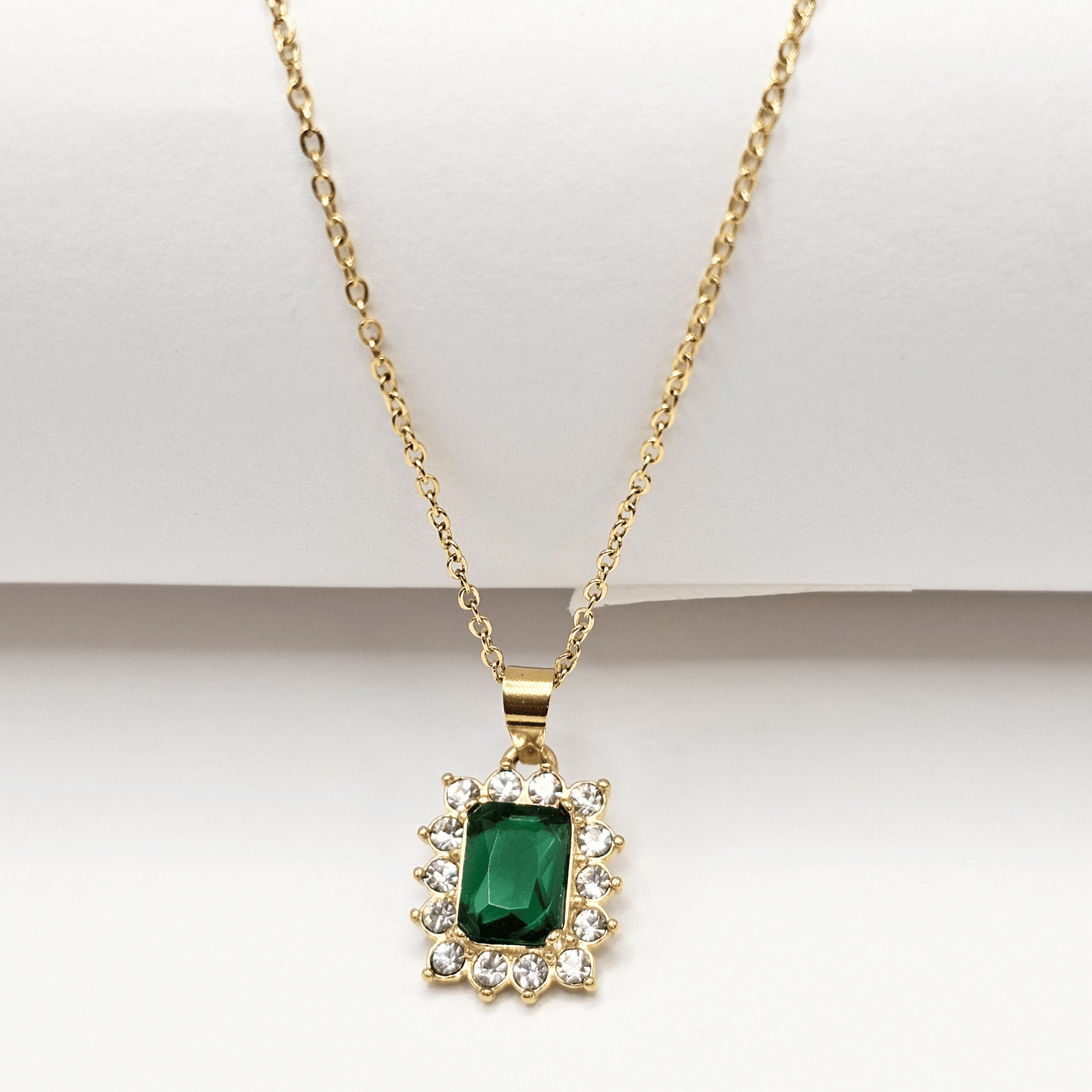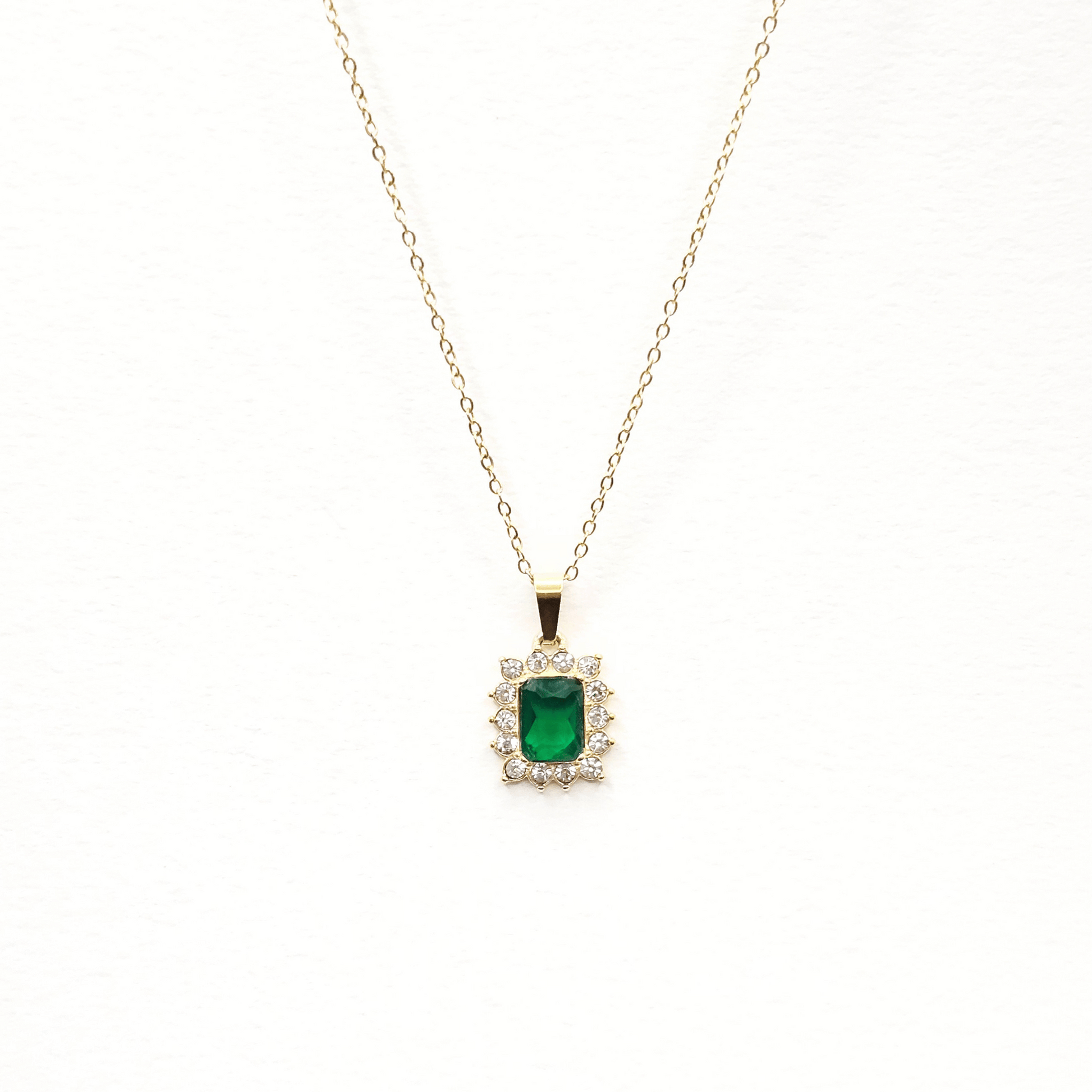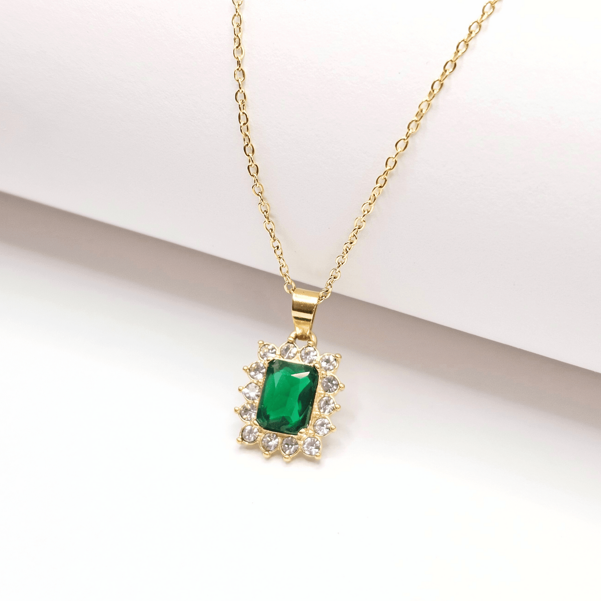 Indulge in timeless sophistication with the Lux Collection Emerald Halo Pendant Necklace. Featuring a deep emerald-cut green stone surrounded by a halo of brilliant cubic zirconia, this design exudes elegance and refinement. Crafted from premium 18k gold-plated stainless steel with PVD coating, it is waterproof, tarnish-resistant, and hypoallergenic—perfect for long-lasting luxury. Ideal for special occasions, evening events, or adding a regal touch to your everyday style, this pendant is a true statement of elegance.
