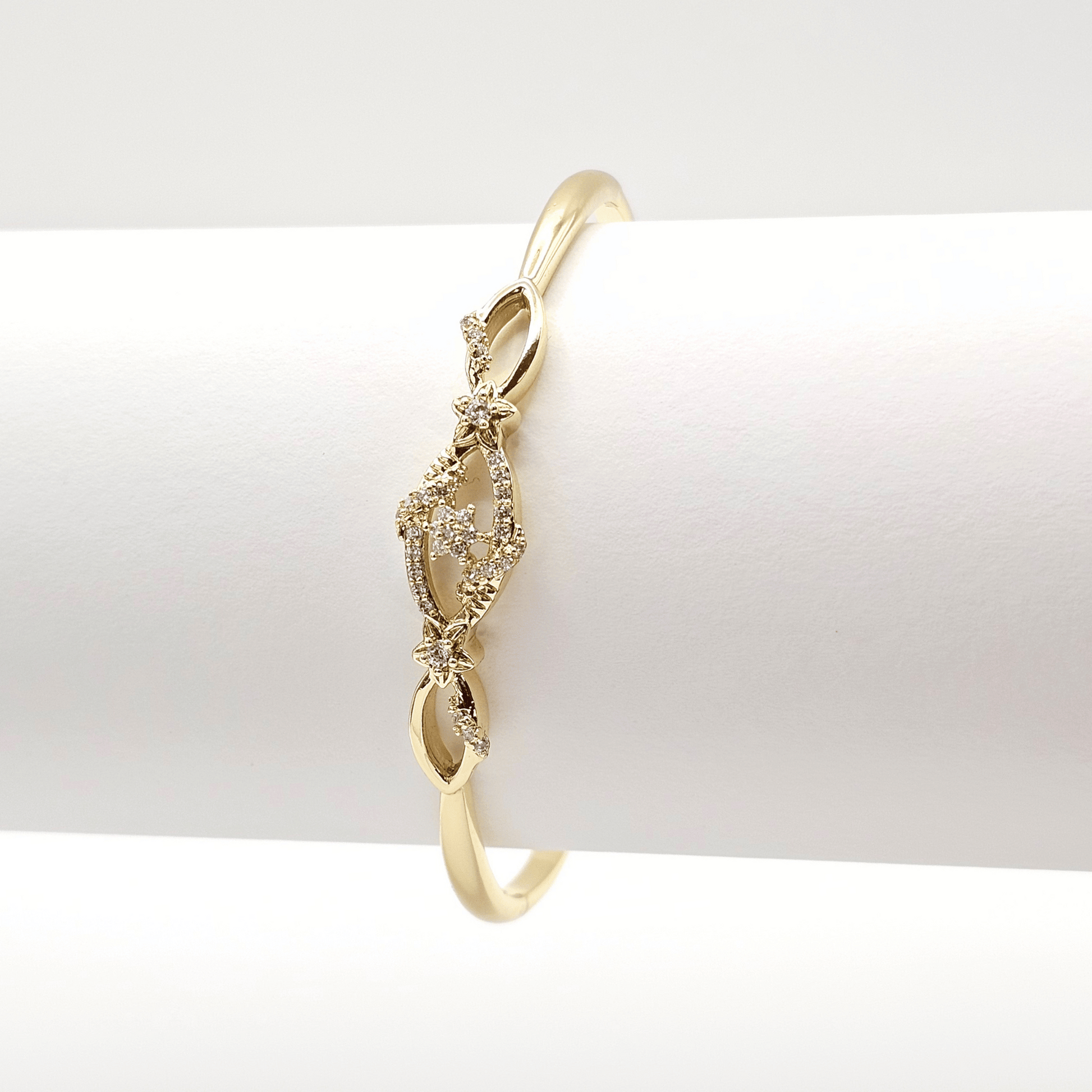 Inspired by delicate starlit blossoms, the Chivelle Étoile Bloom Crystal Bangle from our Luxe Collection is a true statement of refined elegance. Crafted with precision and finished in premium Xuping plating, this hinged bangle features a graceful floral motif intertwined with crystal-studded curves, symbolising timeless beauty and sophistication. Its lightweight yet durable design makes it perfect for special occasions or to elevate your everyday style.