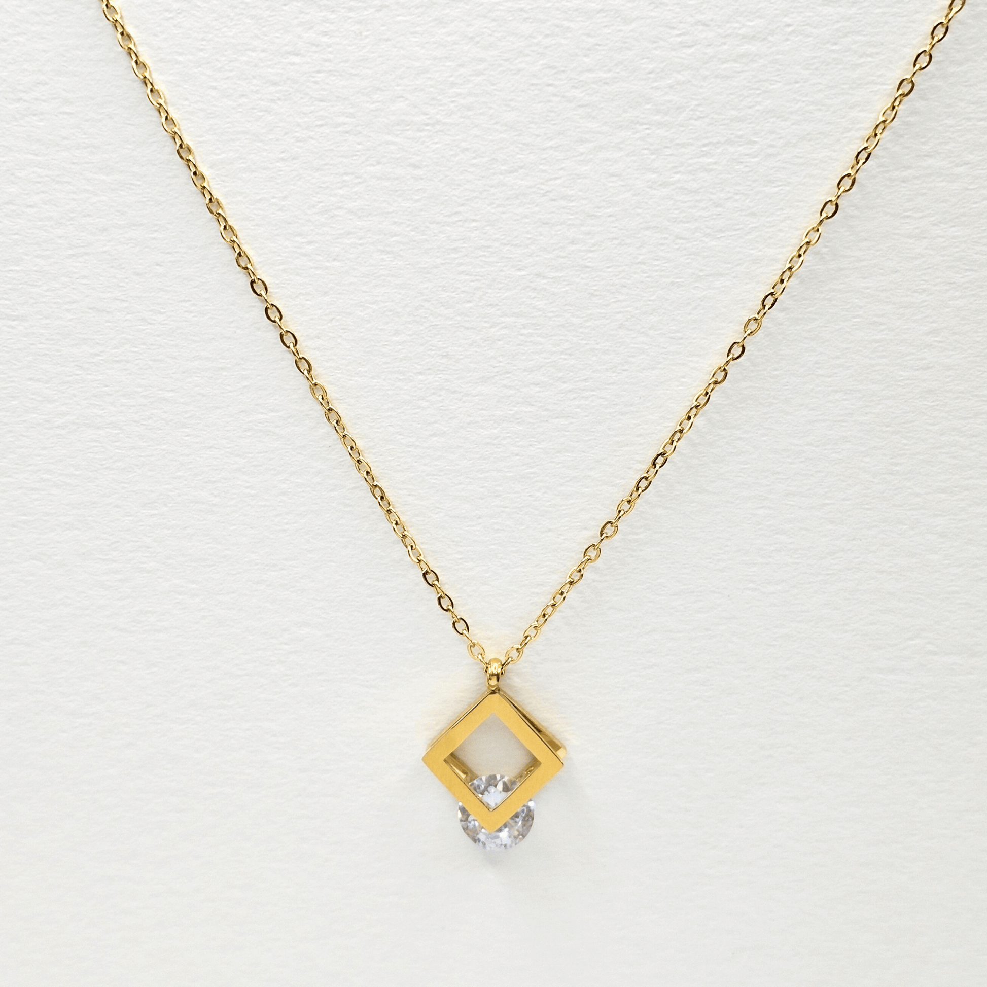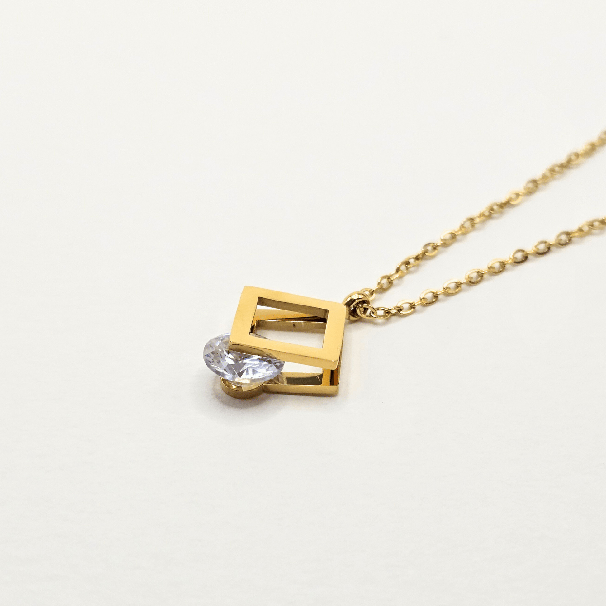 Chivelle Geometric Grace Pendant Necklace – Minimalist Square Frame with Cubic Zirconia Accent