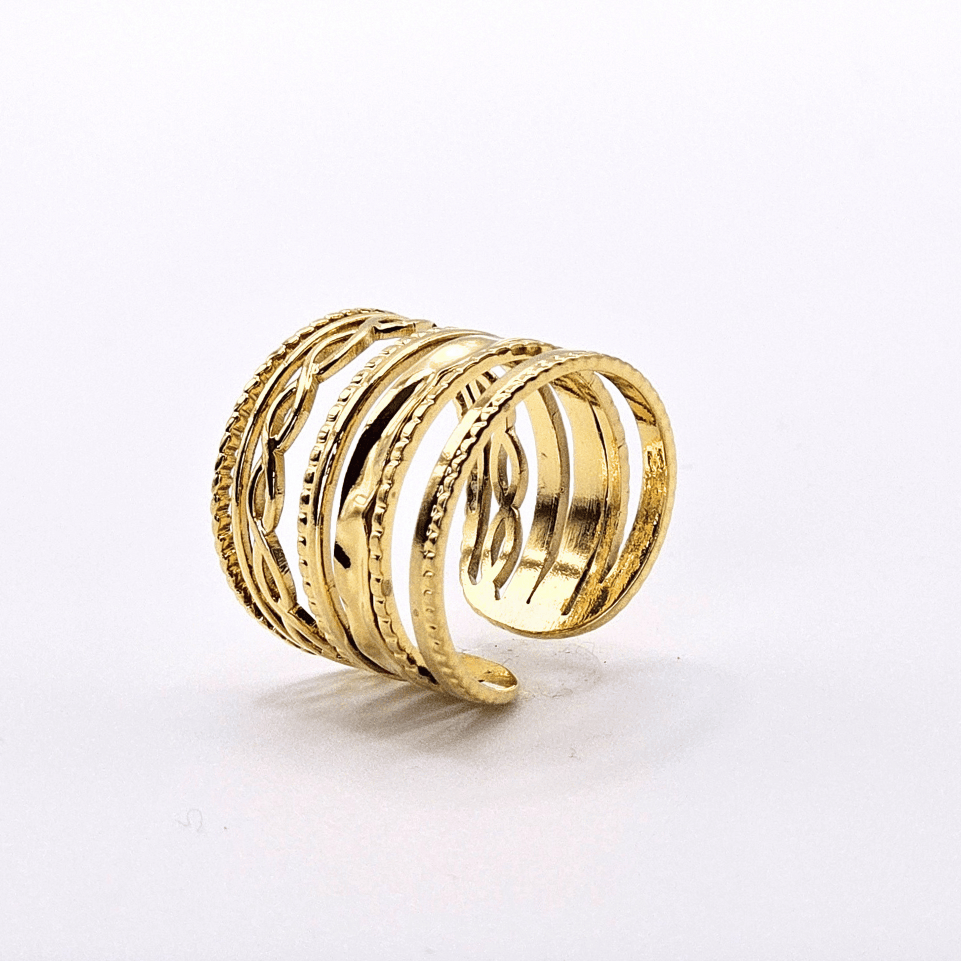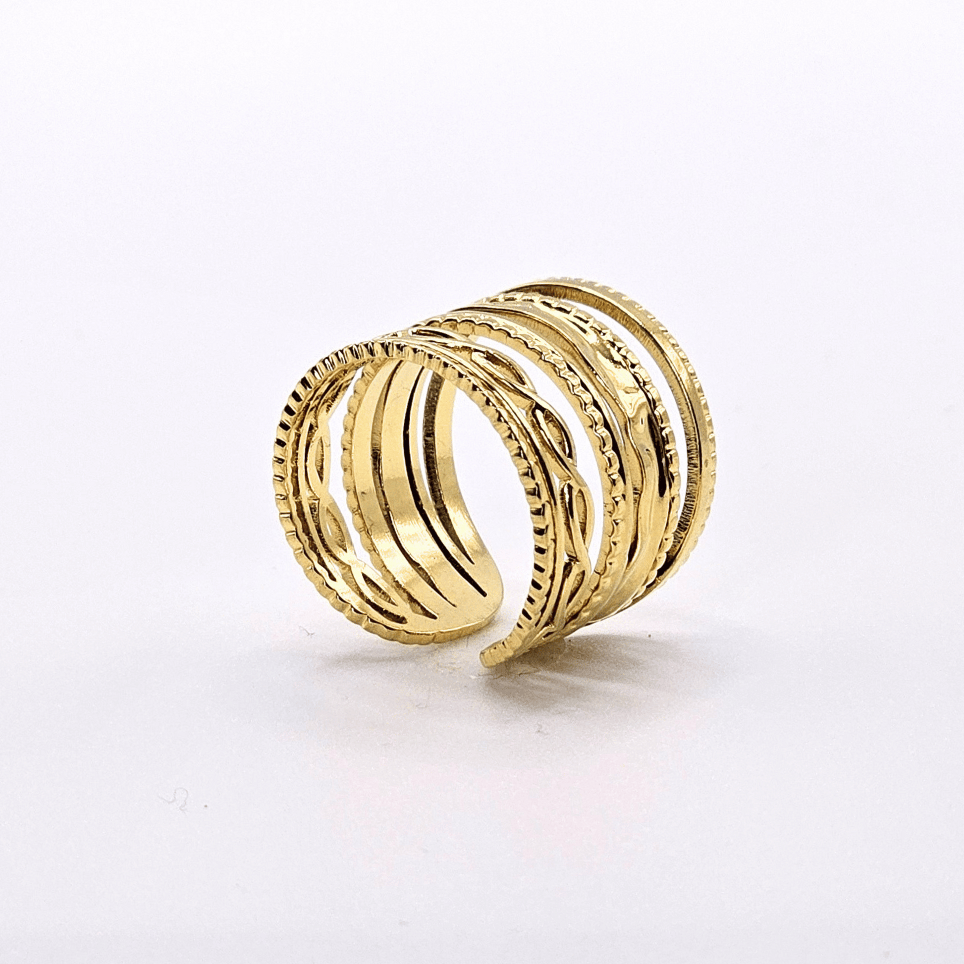 Pair the Chivelle Gold Harmony Stackable Ring with a delicate gold bracelet and minimalist earrings for a chic, coordinated everyday look.