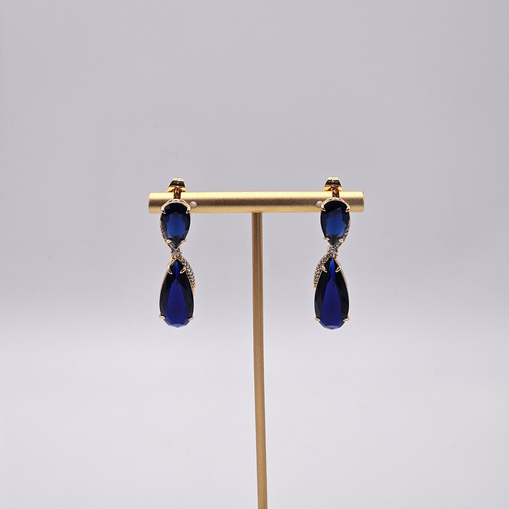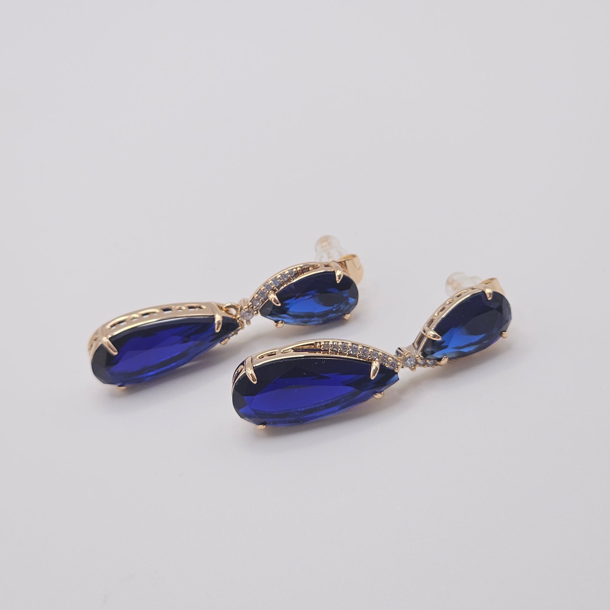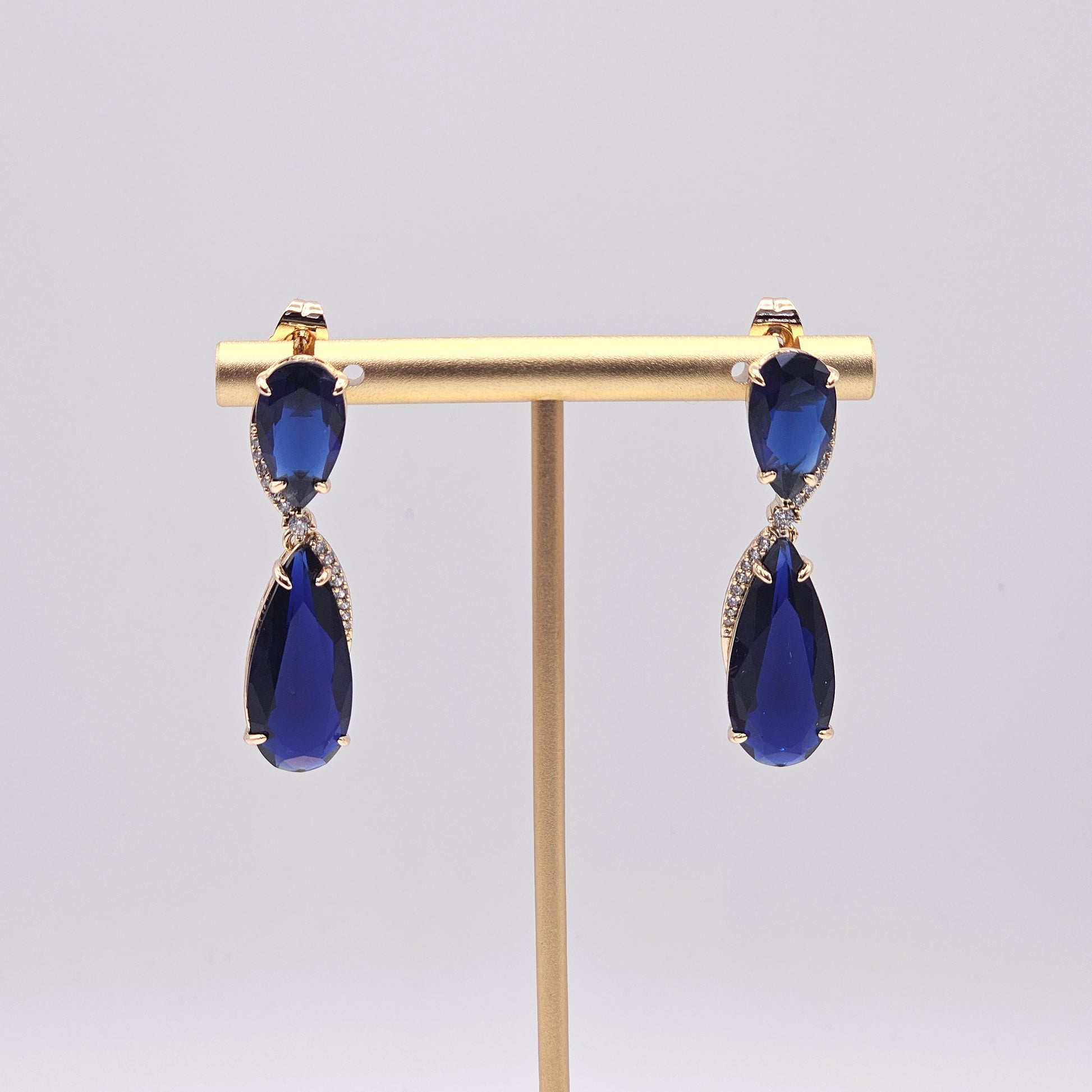 Step into timeless sophistication with the Chivelle Midnight Elegance Drop Earrings from our Luxe Collection. Designed with deep sapphire-blue teardrop stones, framed by delicate cubic zirconia accents, these drop earrings capture the perfect balance of elegance and boldness. Crafted with precision and plated in 18k gold, they are lightweight yet statement-making, ideal for evenings where luxury speaks louder than words. Whether paired with a sleek evening gown or a chic cocktail dress, these earrings are the perfect companion for your most special occasions.