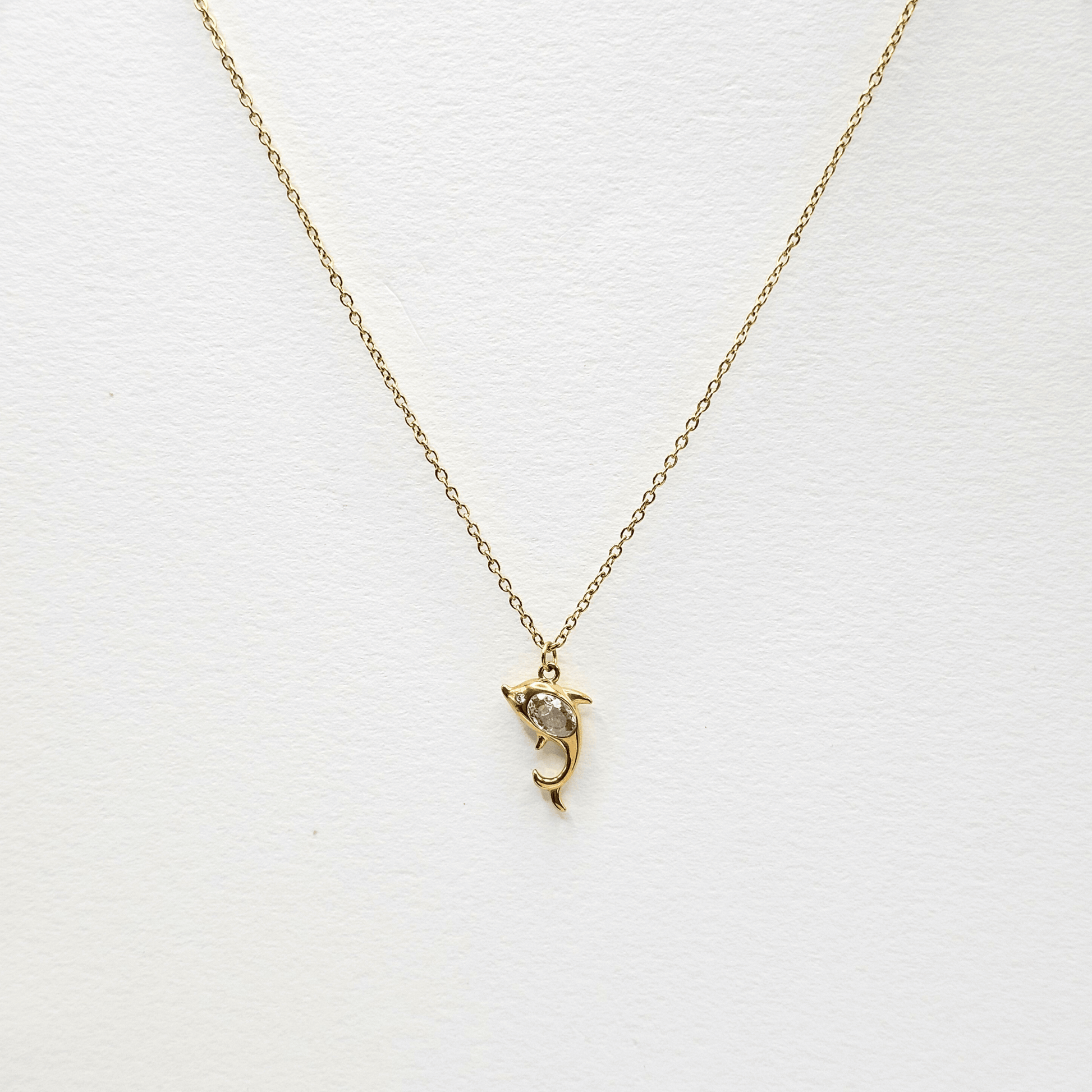 - Design: Dolphin-shaped pendant with marquise-cut crystal body