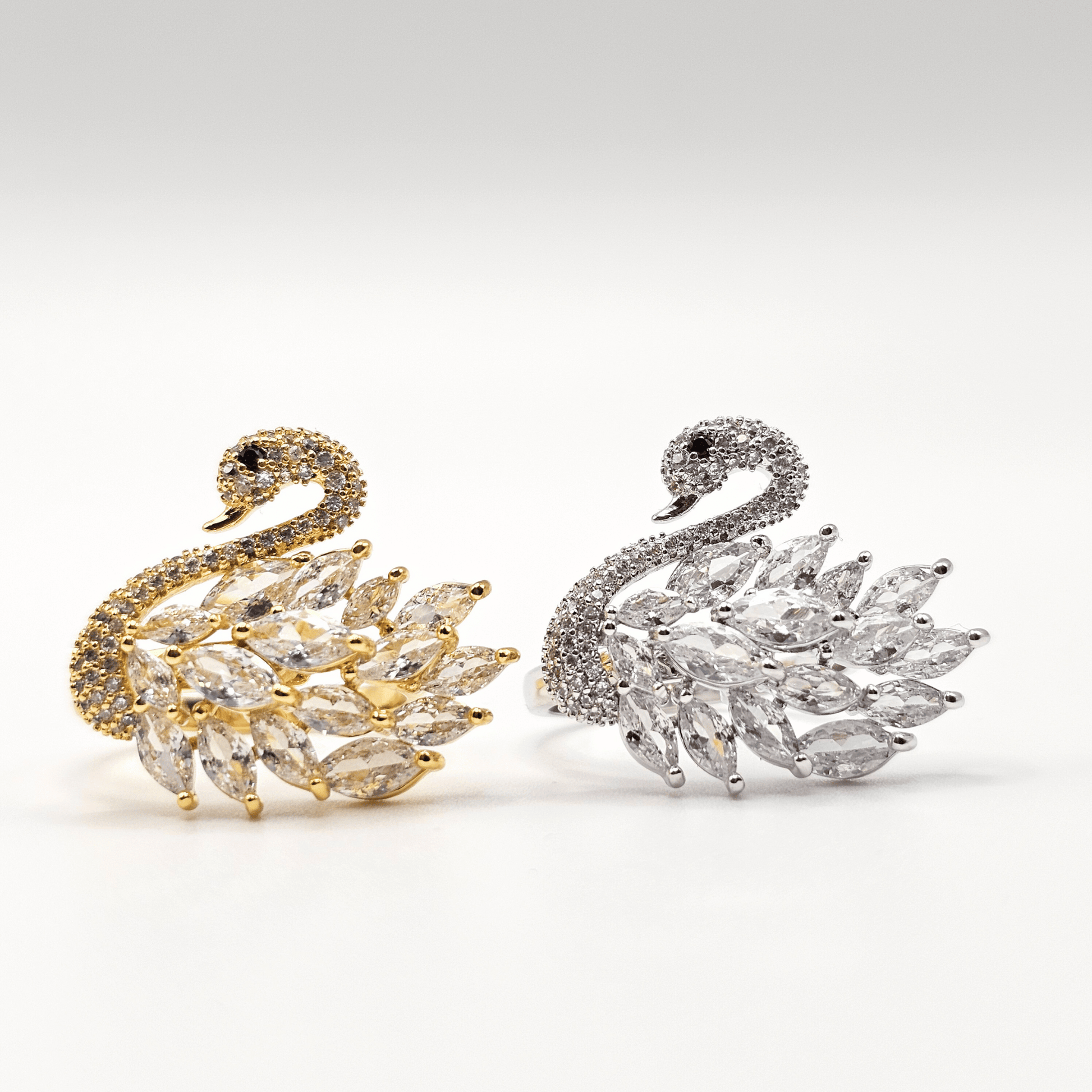 Chivelle Swan Elegance Statement Ring – Gold / Silver
