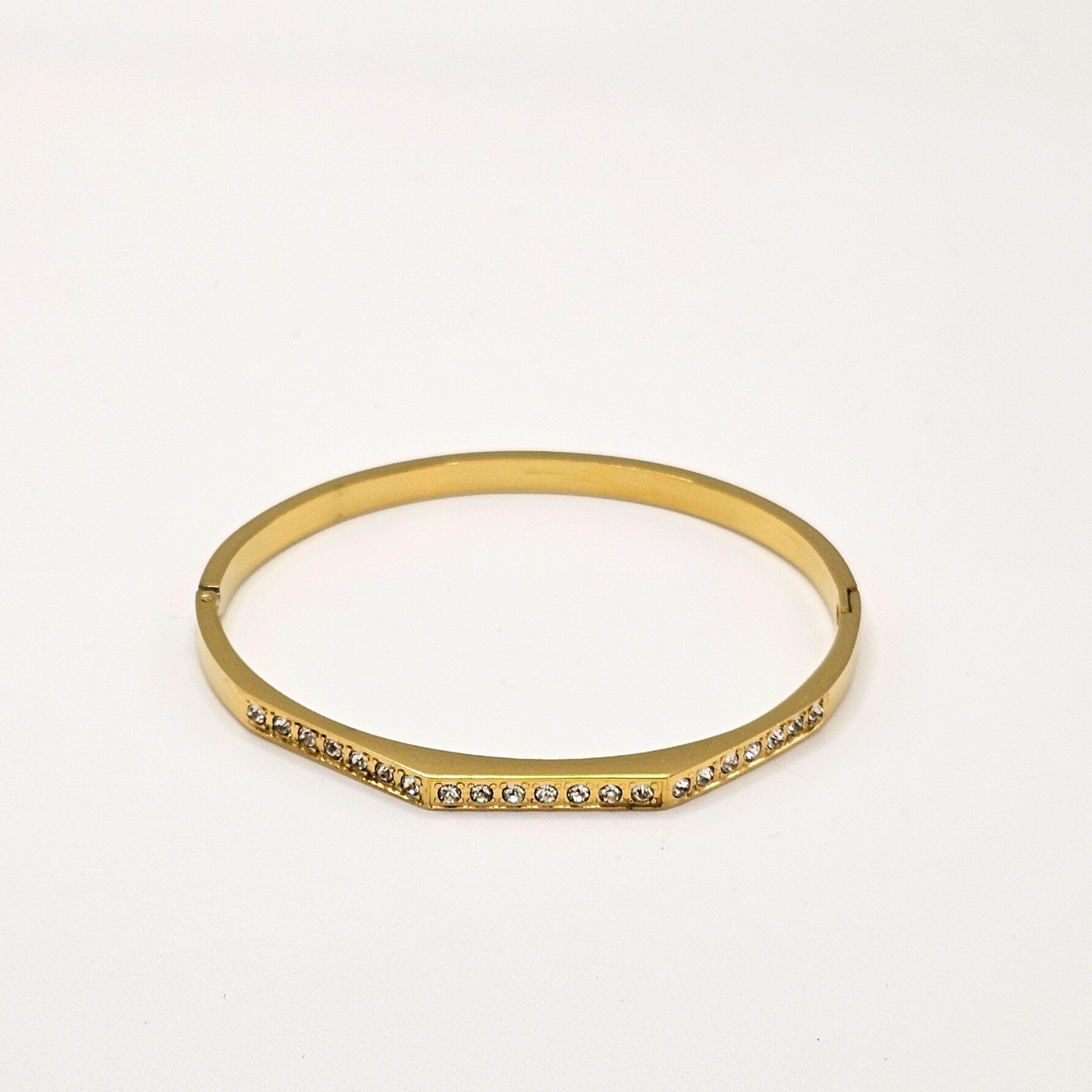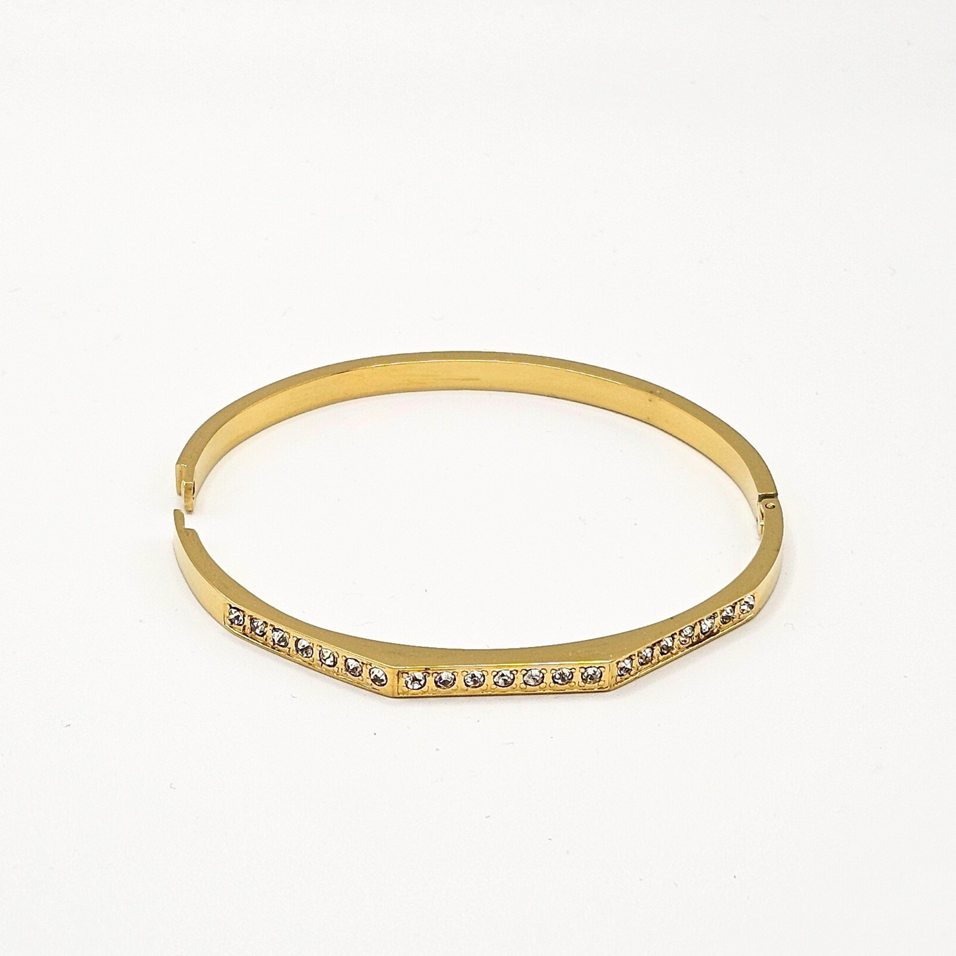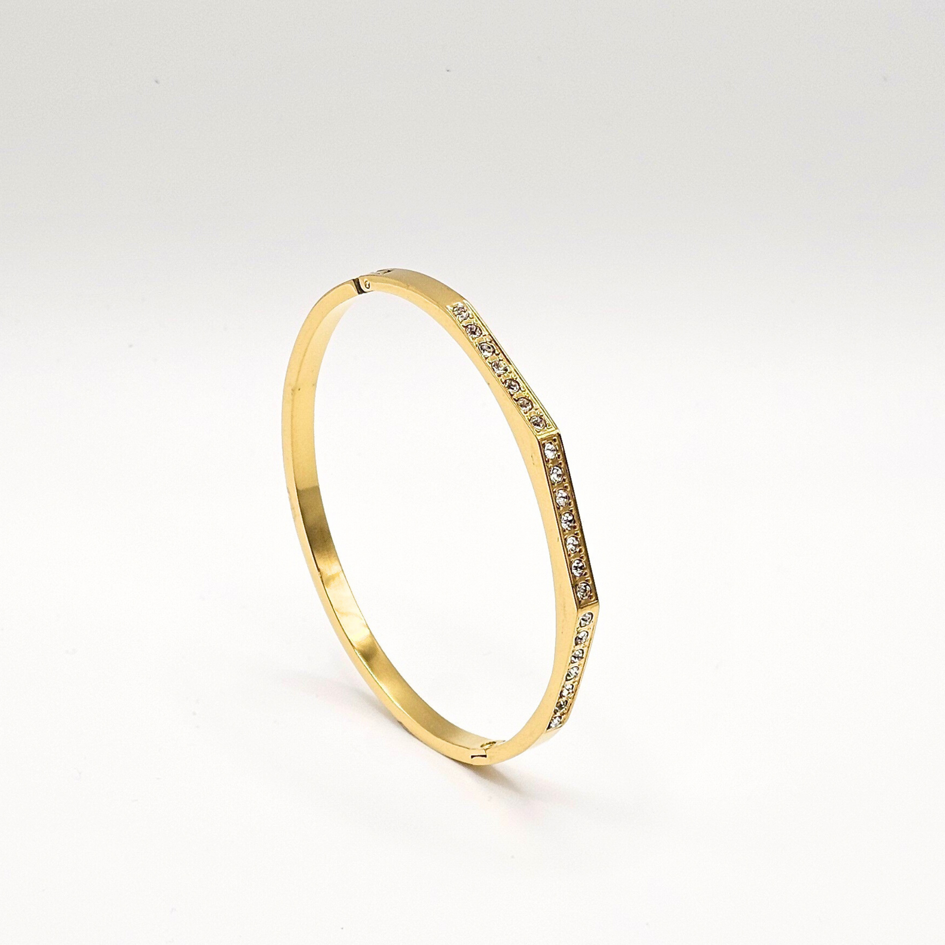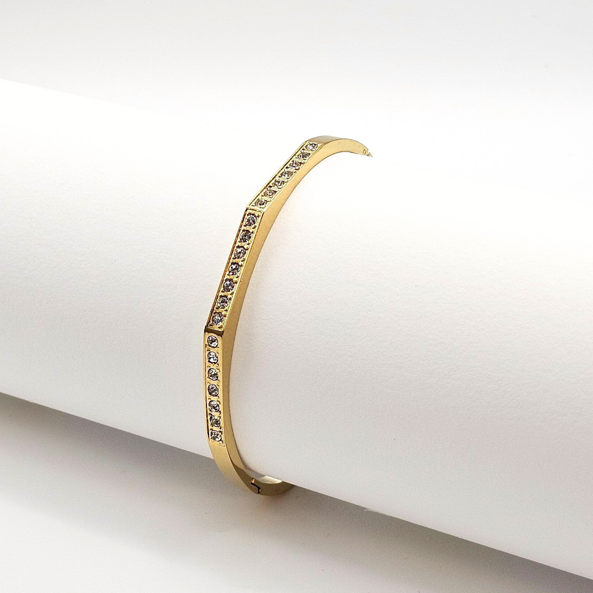 Cubic Zirconia Hinge Bangle Bracelet – 18K Gold Plated