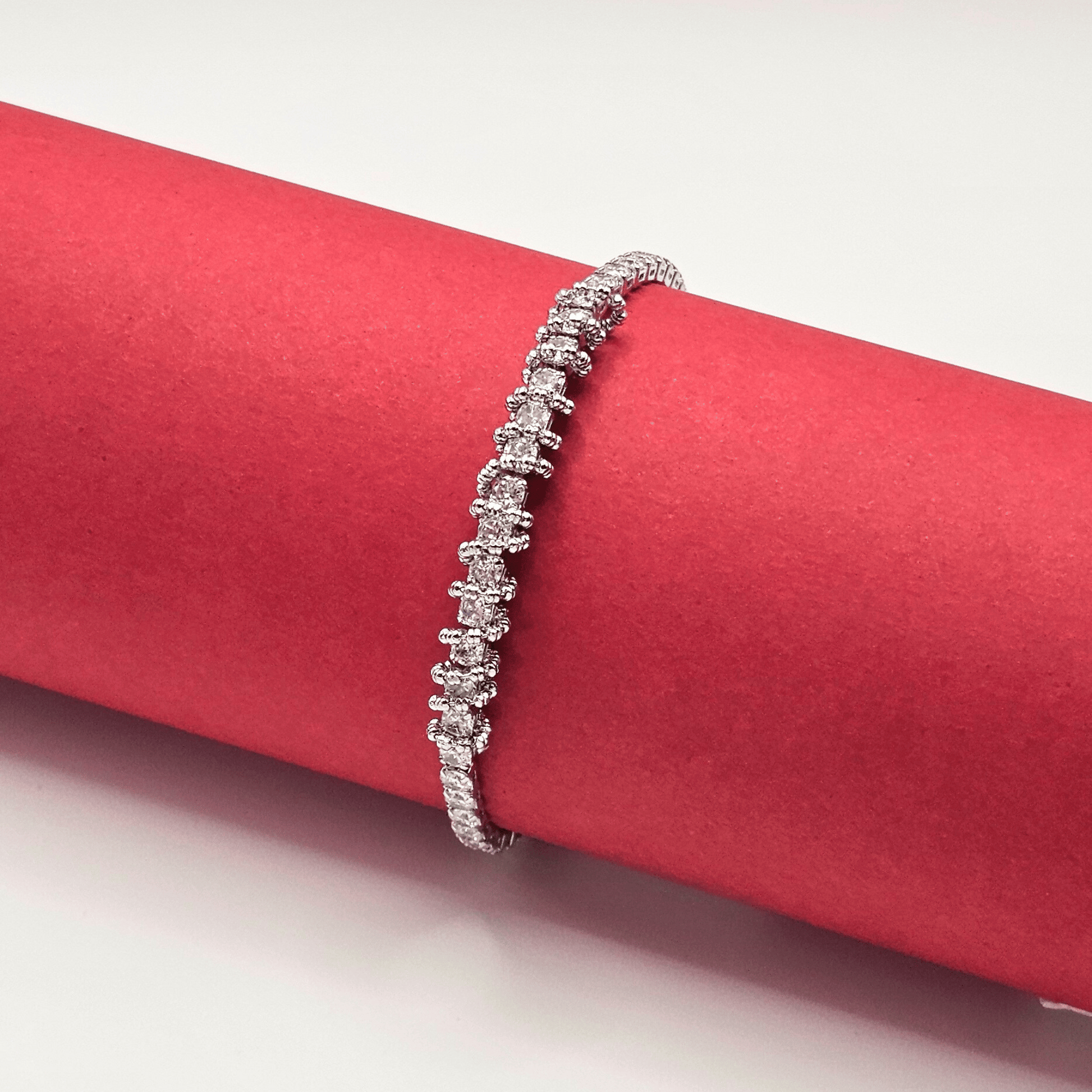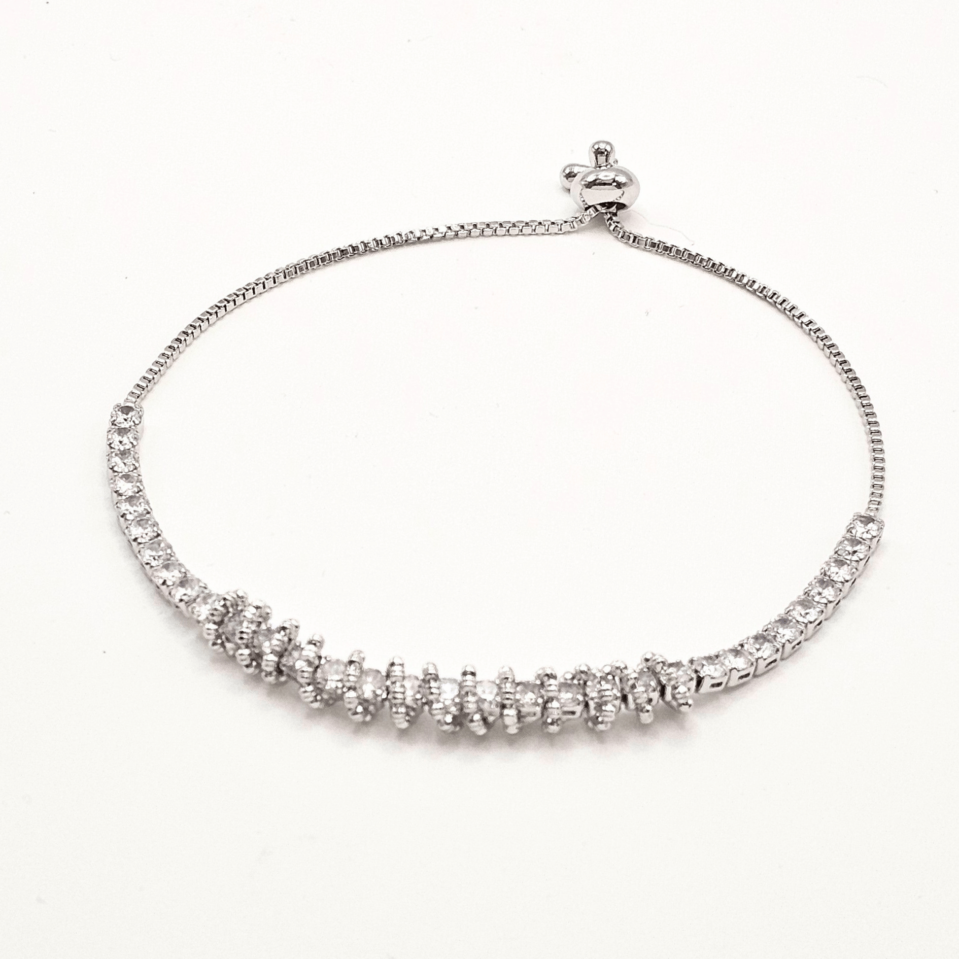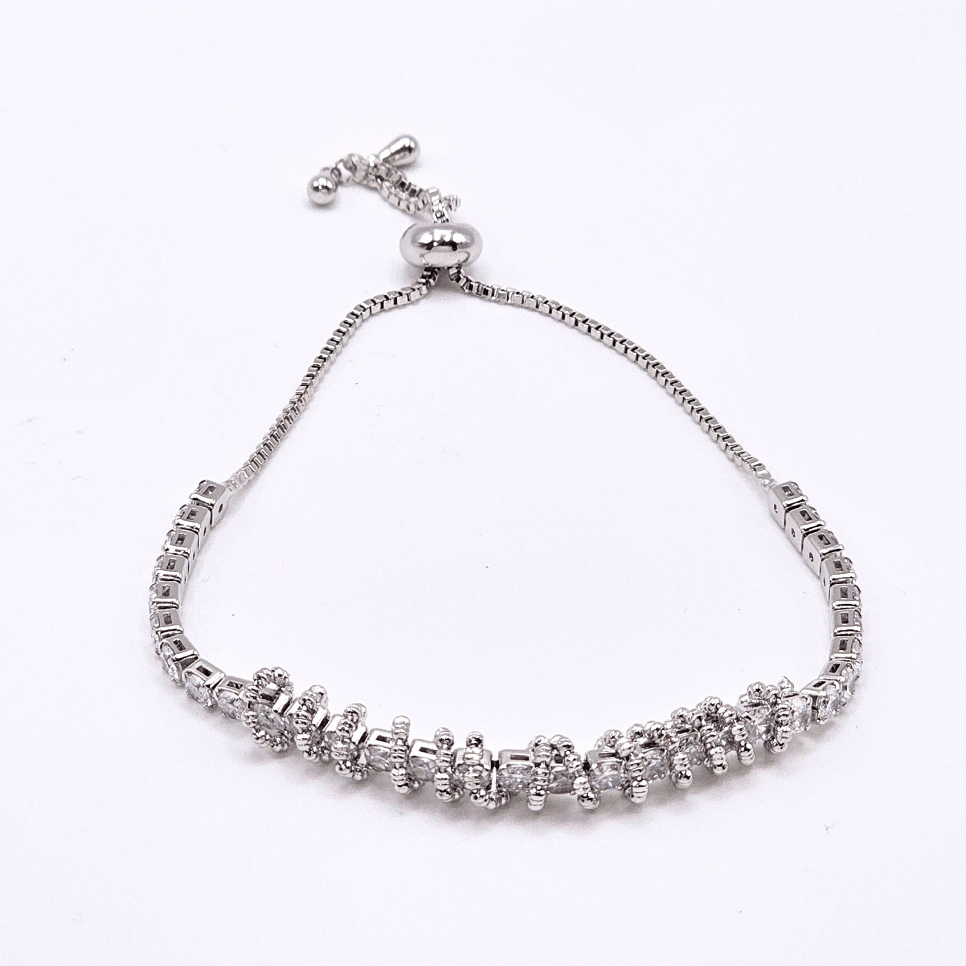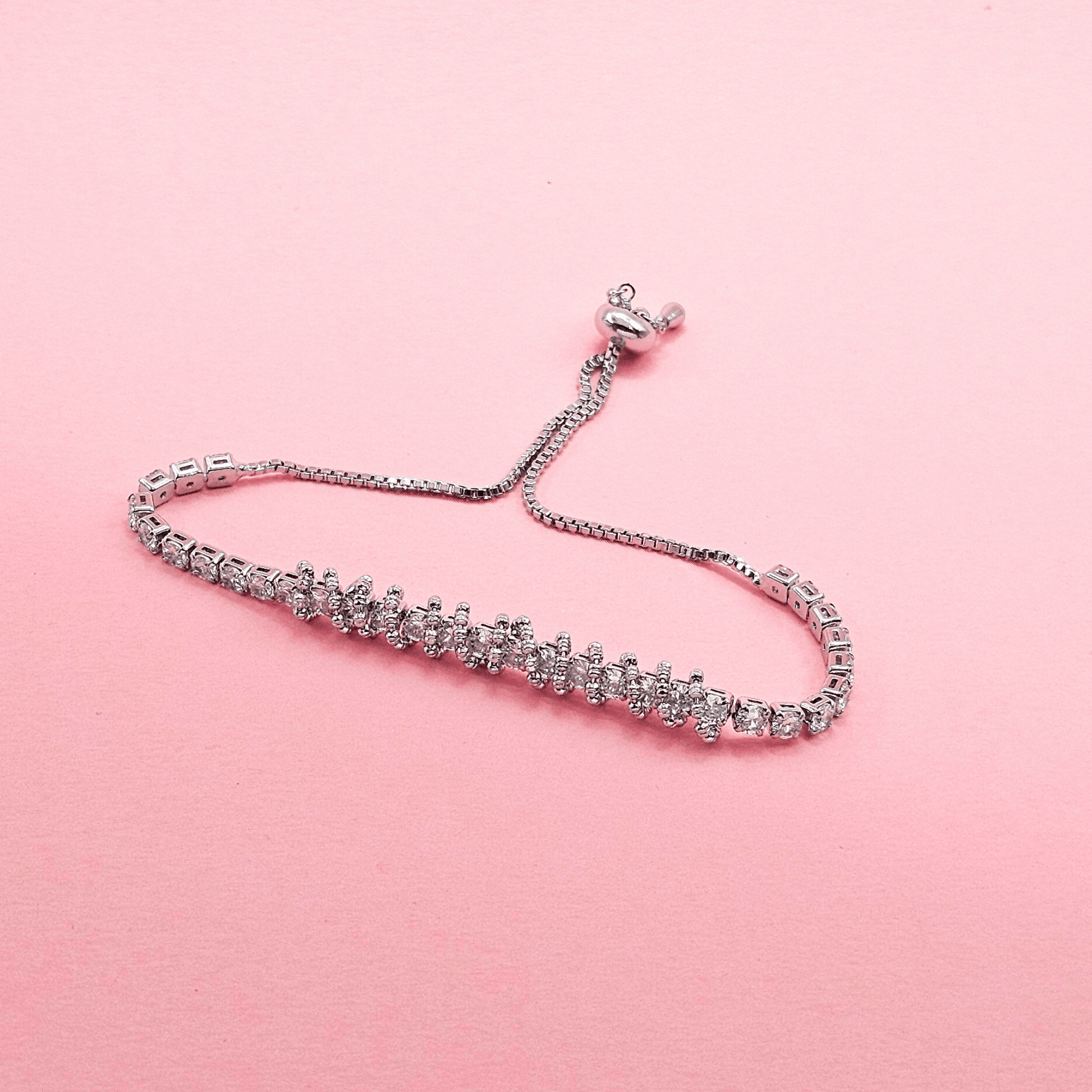 Delicate Silver-Toned Bracelet – Adjustable with White Stones