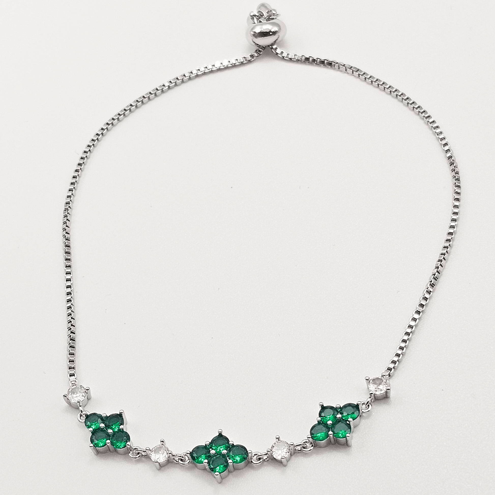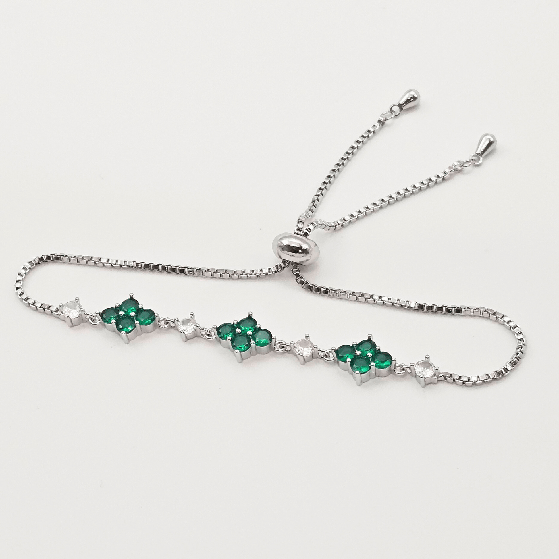 Emerald-Green Clover Adjustable Bracelet – Silver