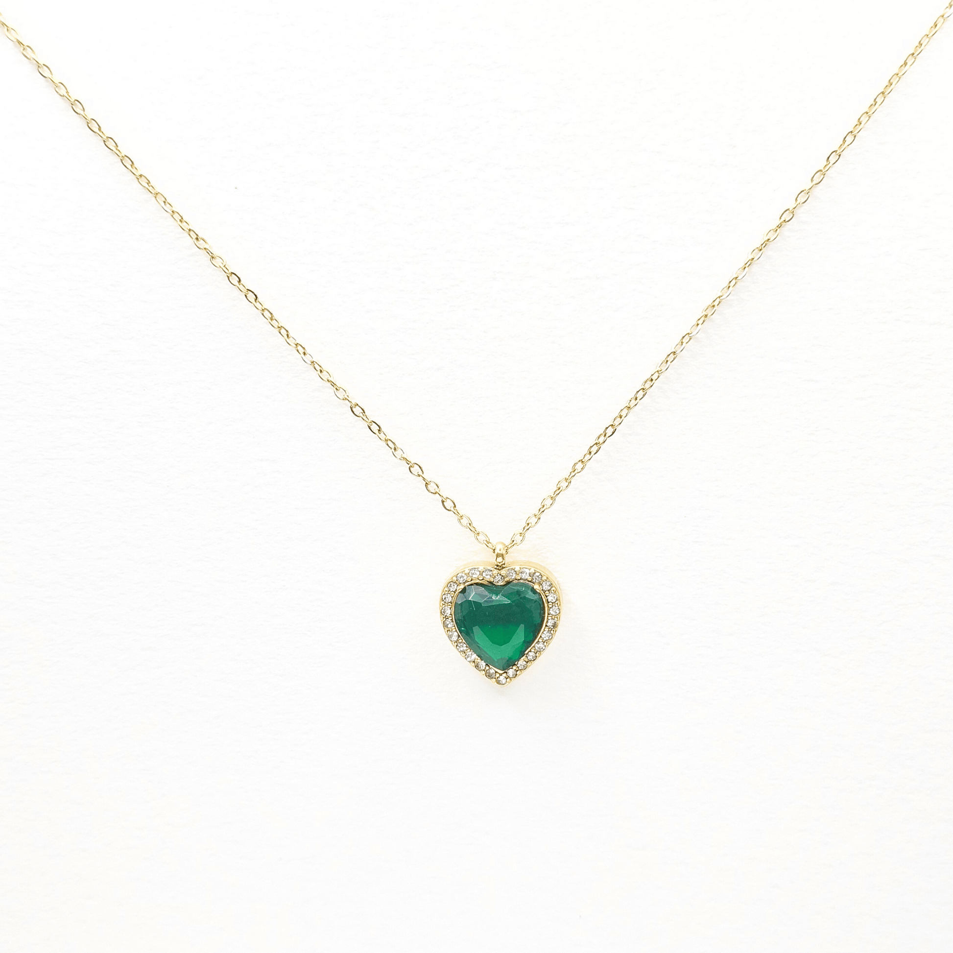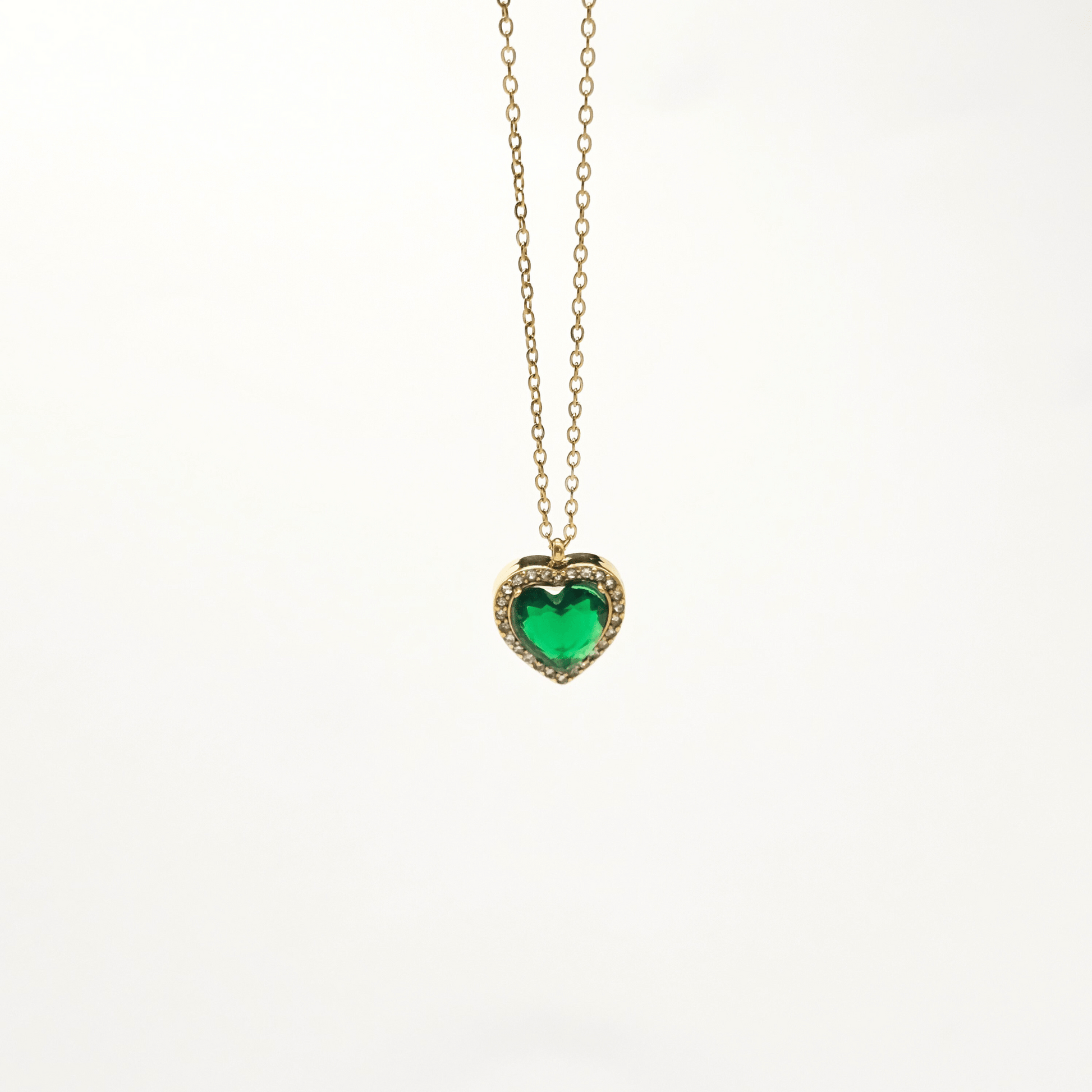 Romance meets regal glamour in the Emerelle Emerald Heart Crystal Statement Necklace from our Luxe Collection. Featuring a vivid emerald-green heart-shaped crystal framed by a halo of pavé-set stones, this piece captures the light and radiates sophistication from every angle.