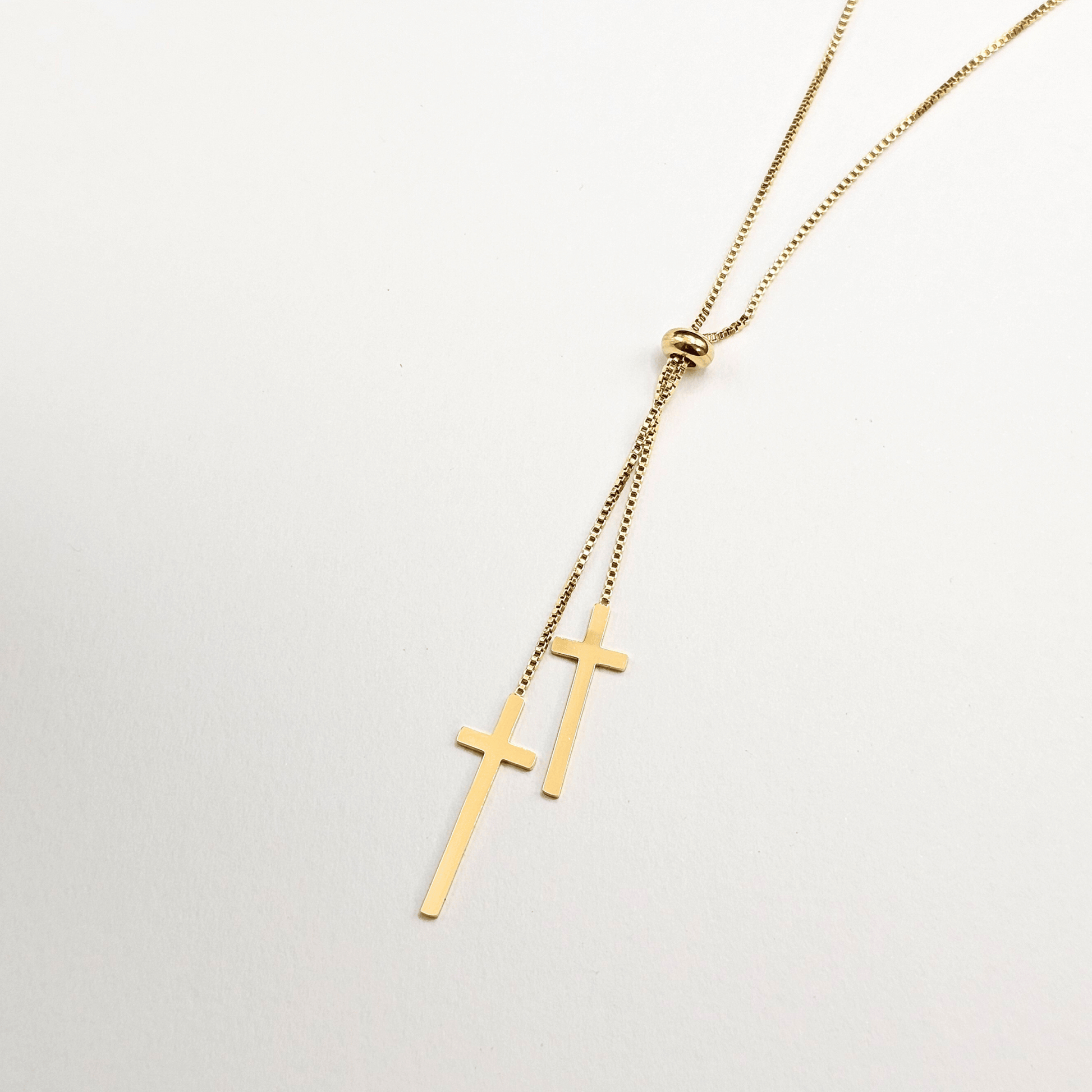 Faith Double Cross Drop Necklace