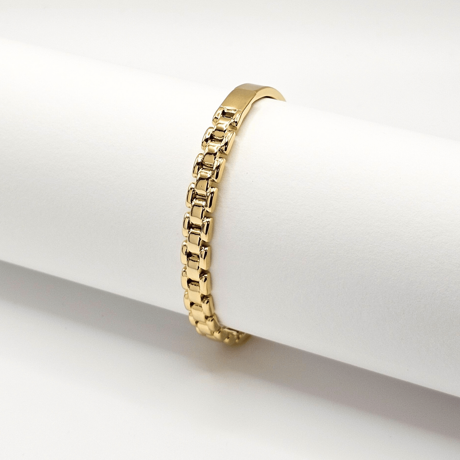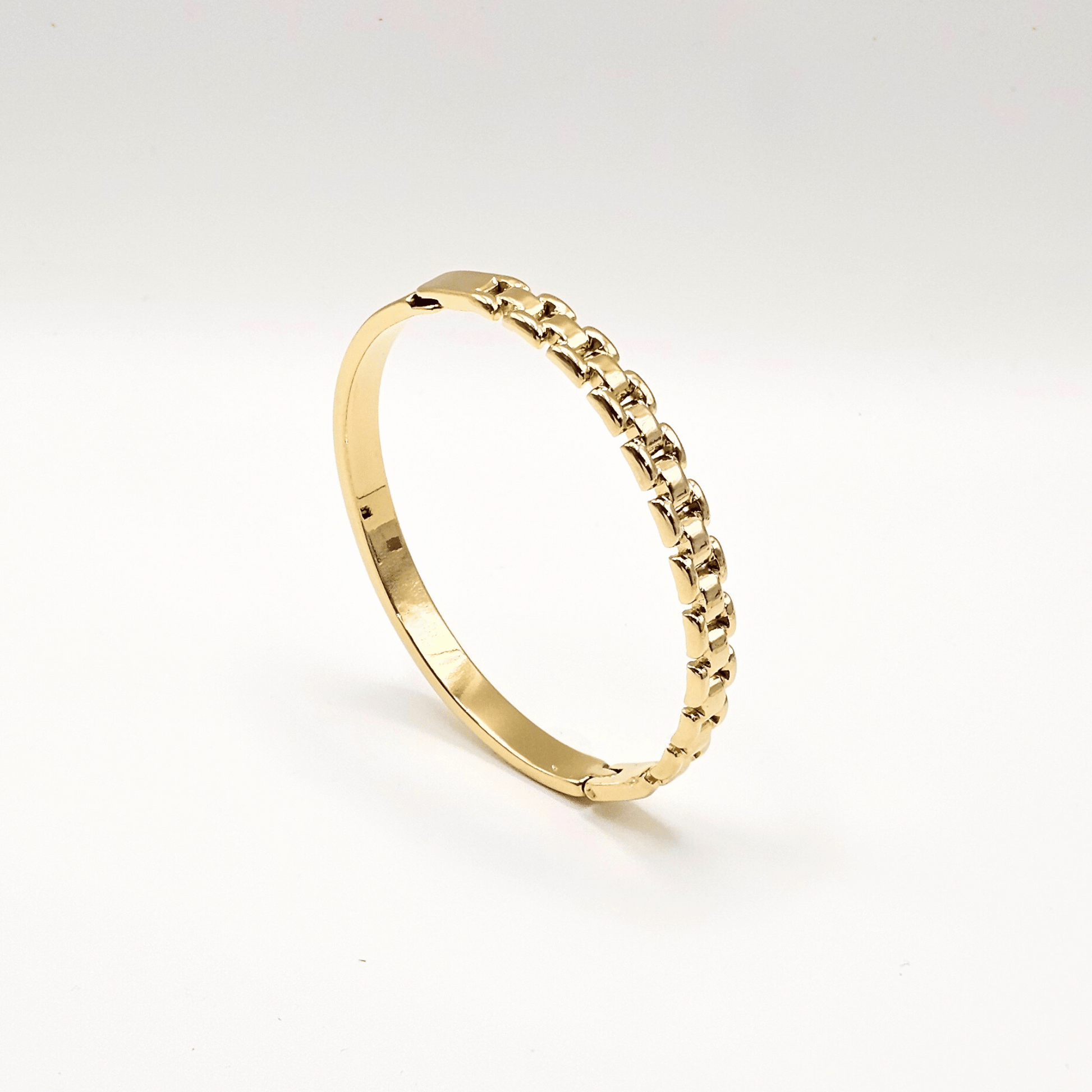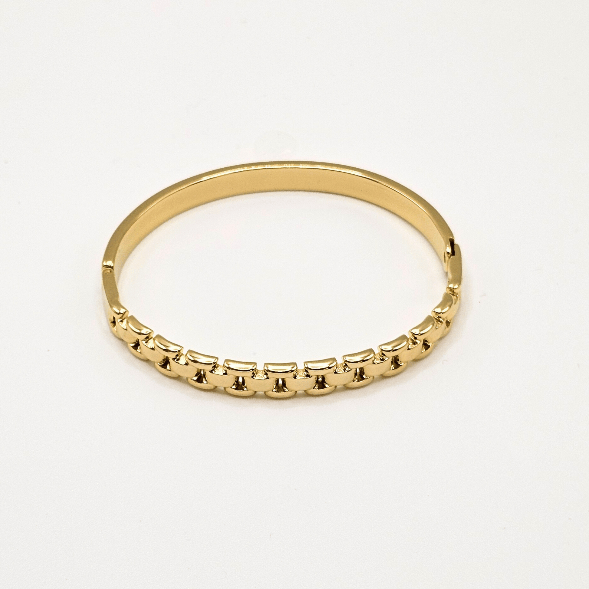 Minimalist Gold Link Bangle - 18K Gold Plated