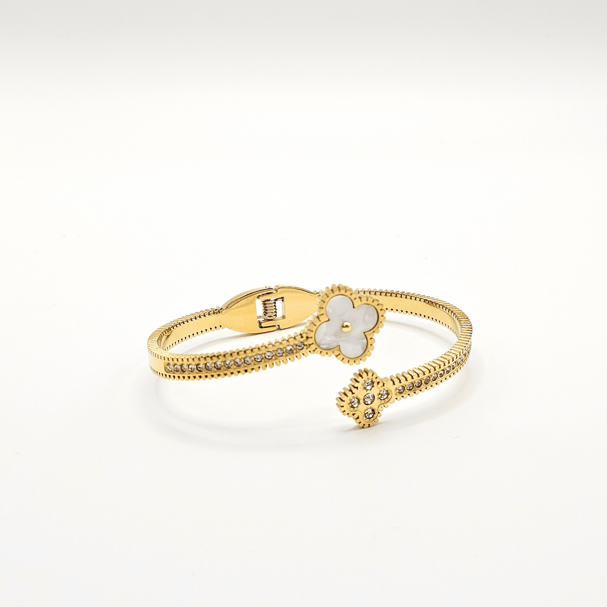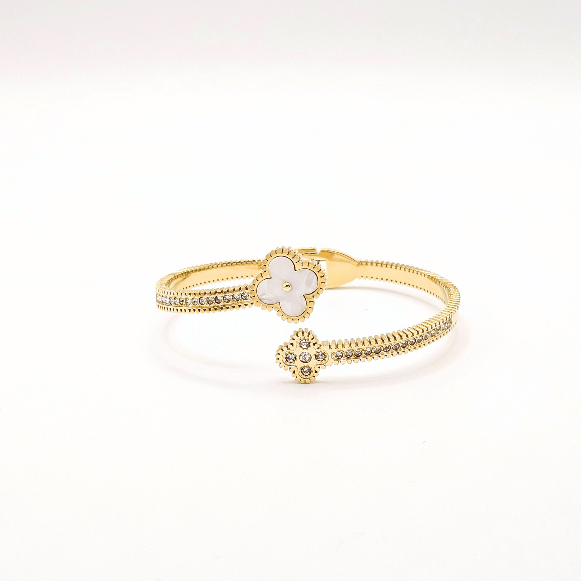 Mother of Pearl Clover & Crystal Cuff Bracelet