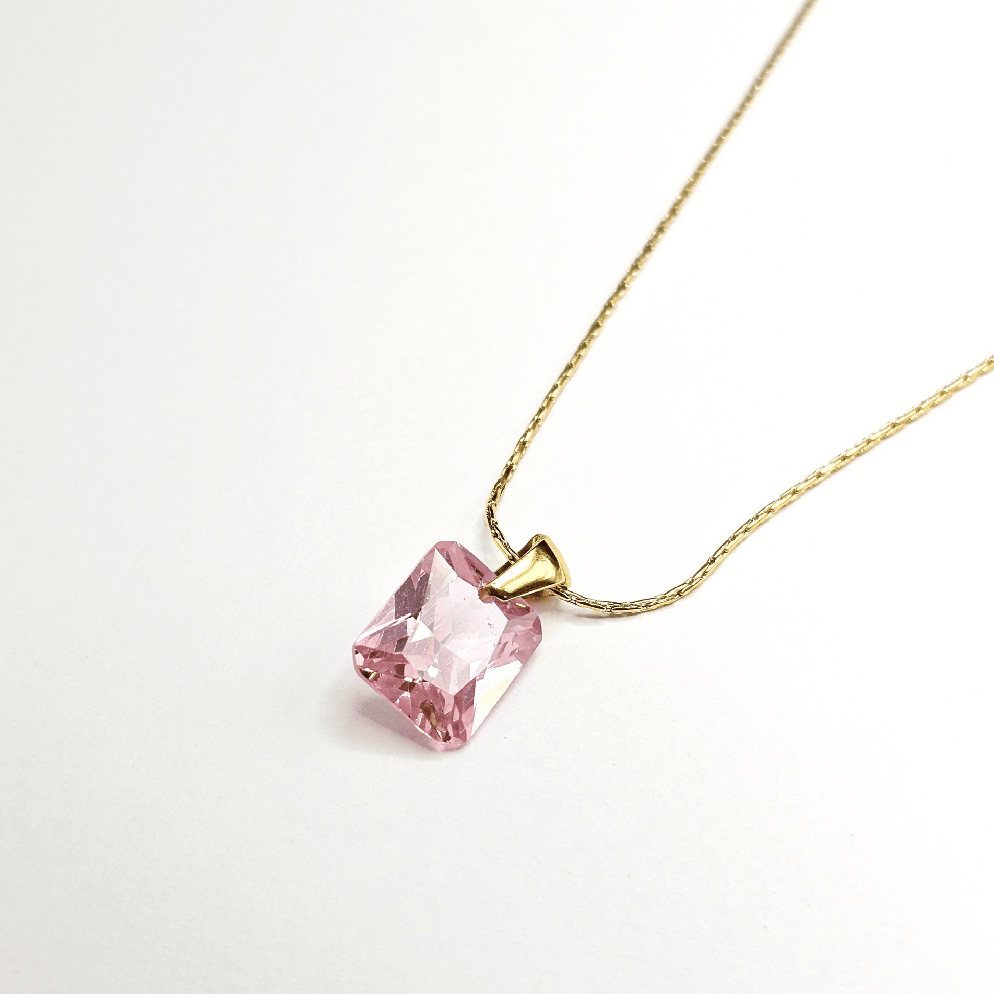 - Emerald-cut crystal pendant – available in Clear, Emerald Green, and Blush Pink